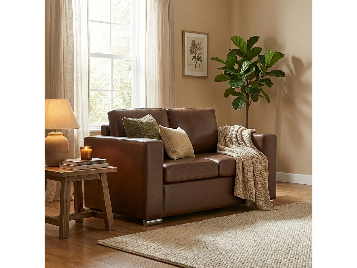 Sofa Wohnzimmer klassisch 2-Sitzer aus braunem Kunstleder Momo