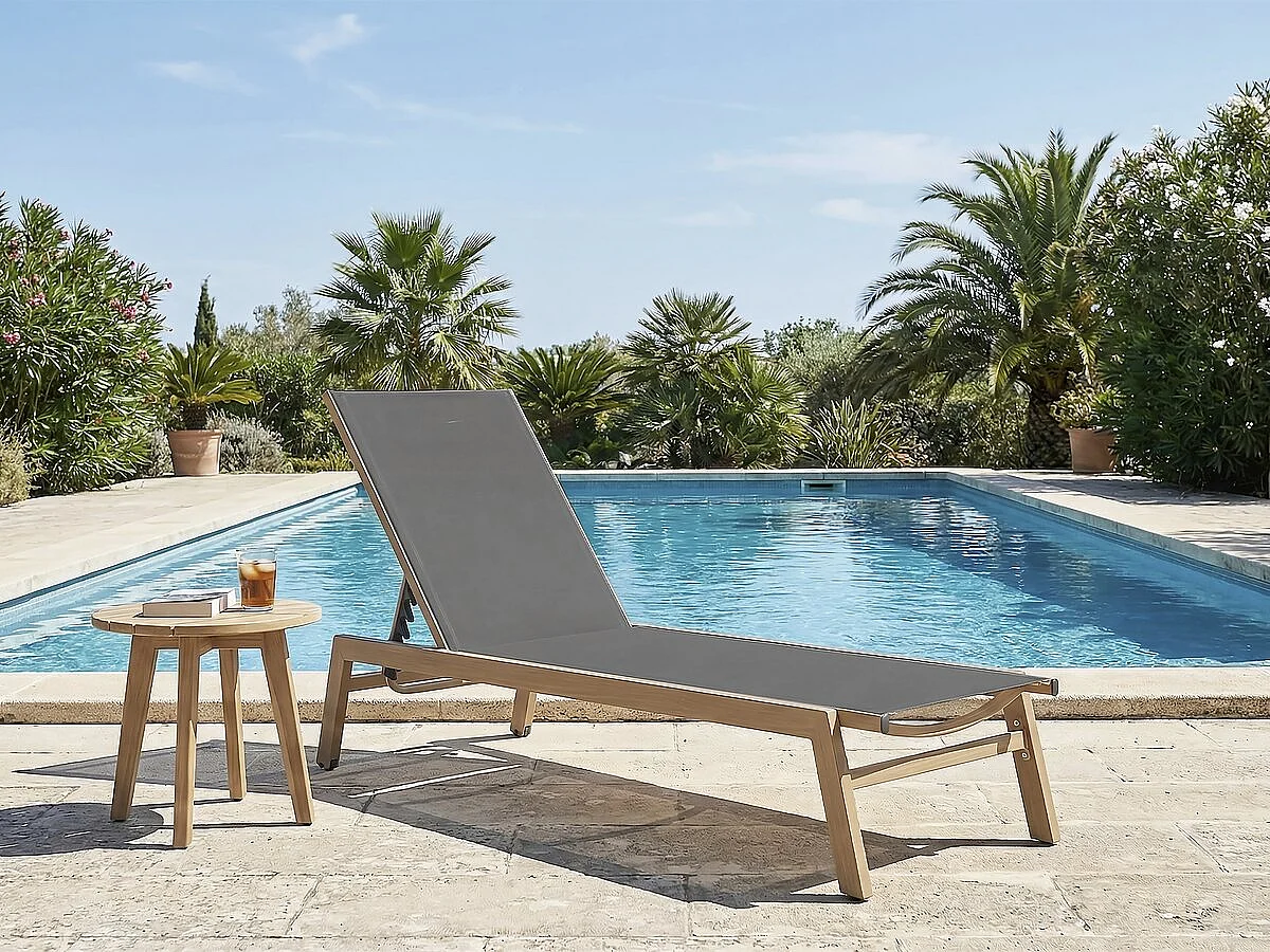 Sonnenliege aus Aluminium in Holzoptik "Elysia" - Grau