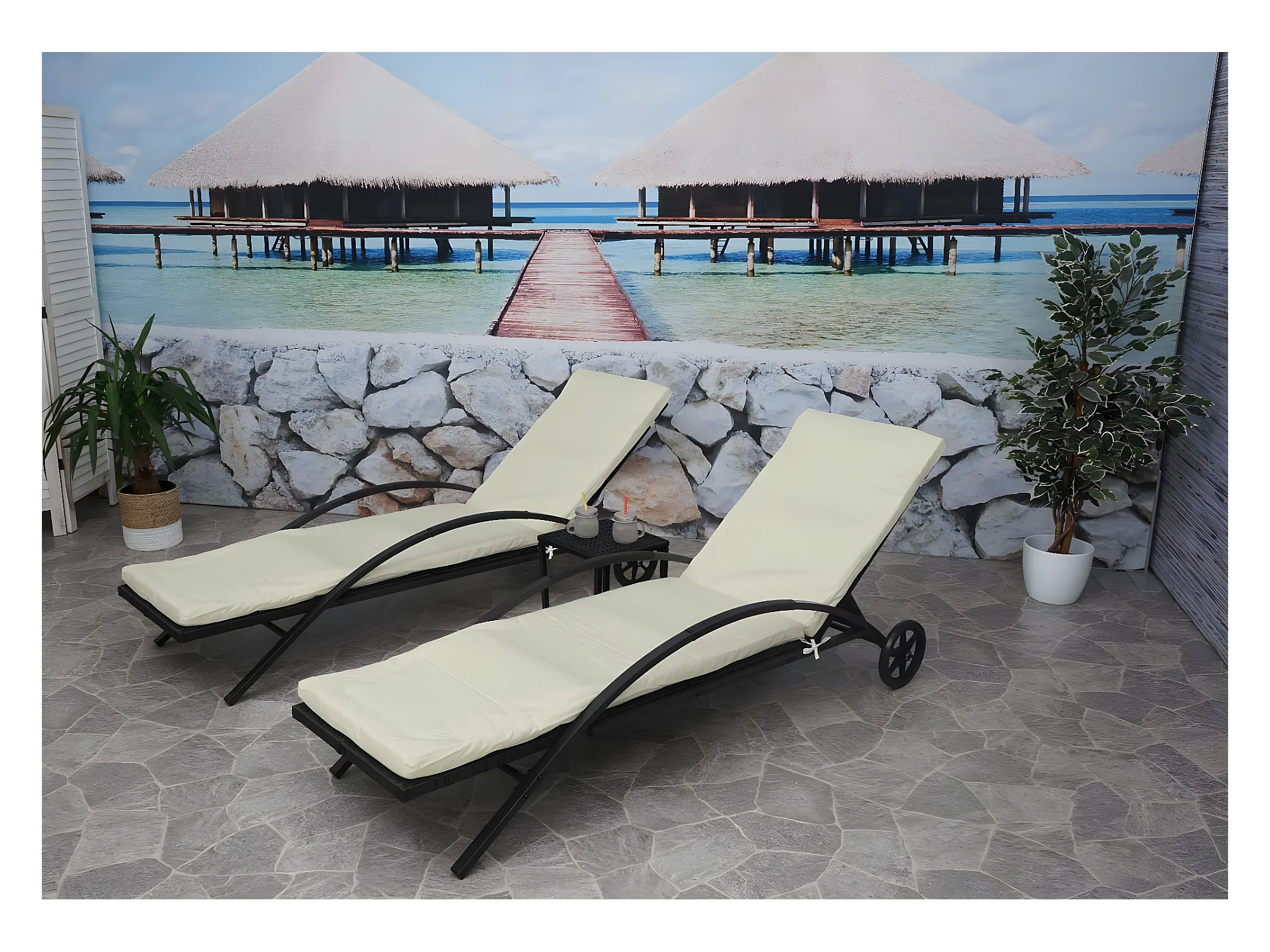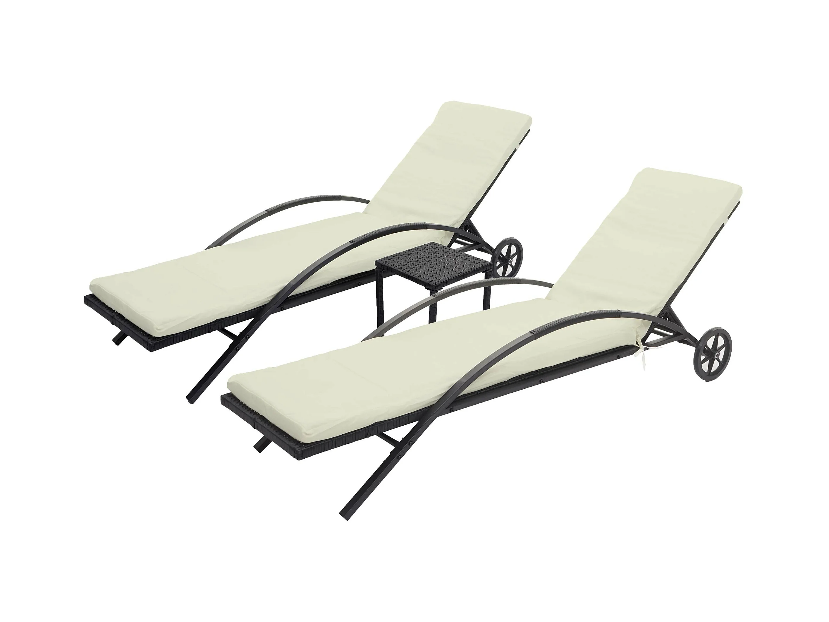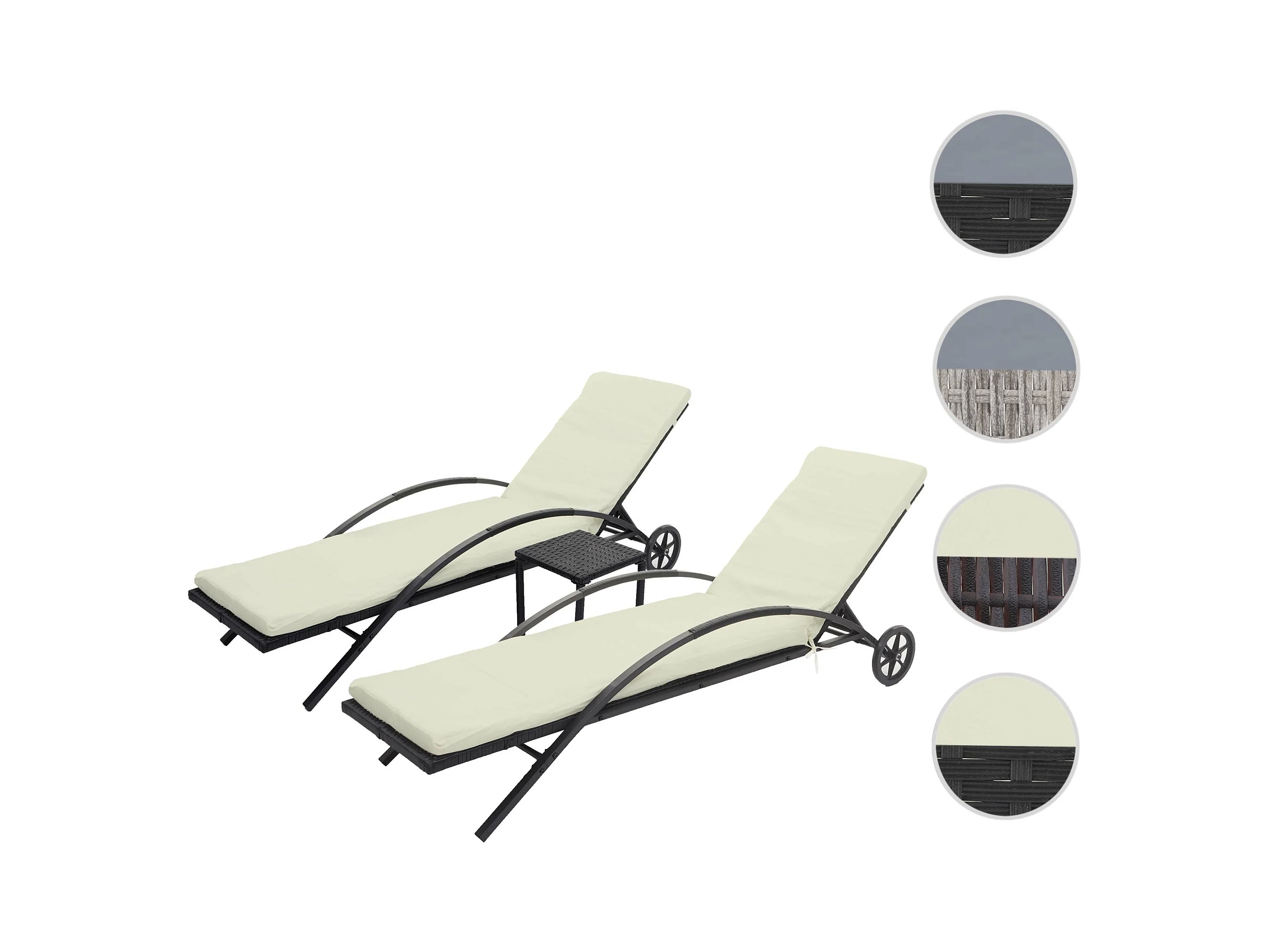 Sonnenliege MCW-E27 (2er-Set), Schwarz, Kissen creme-beige
