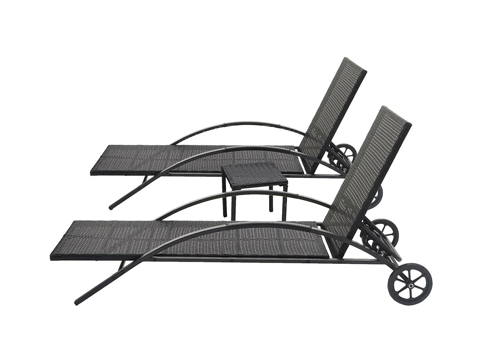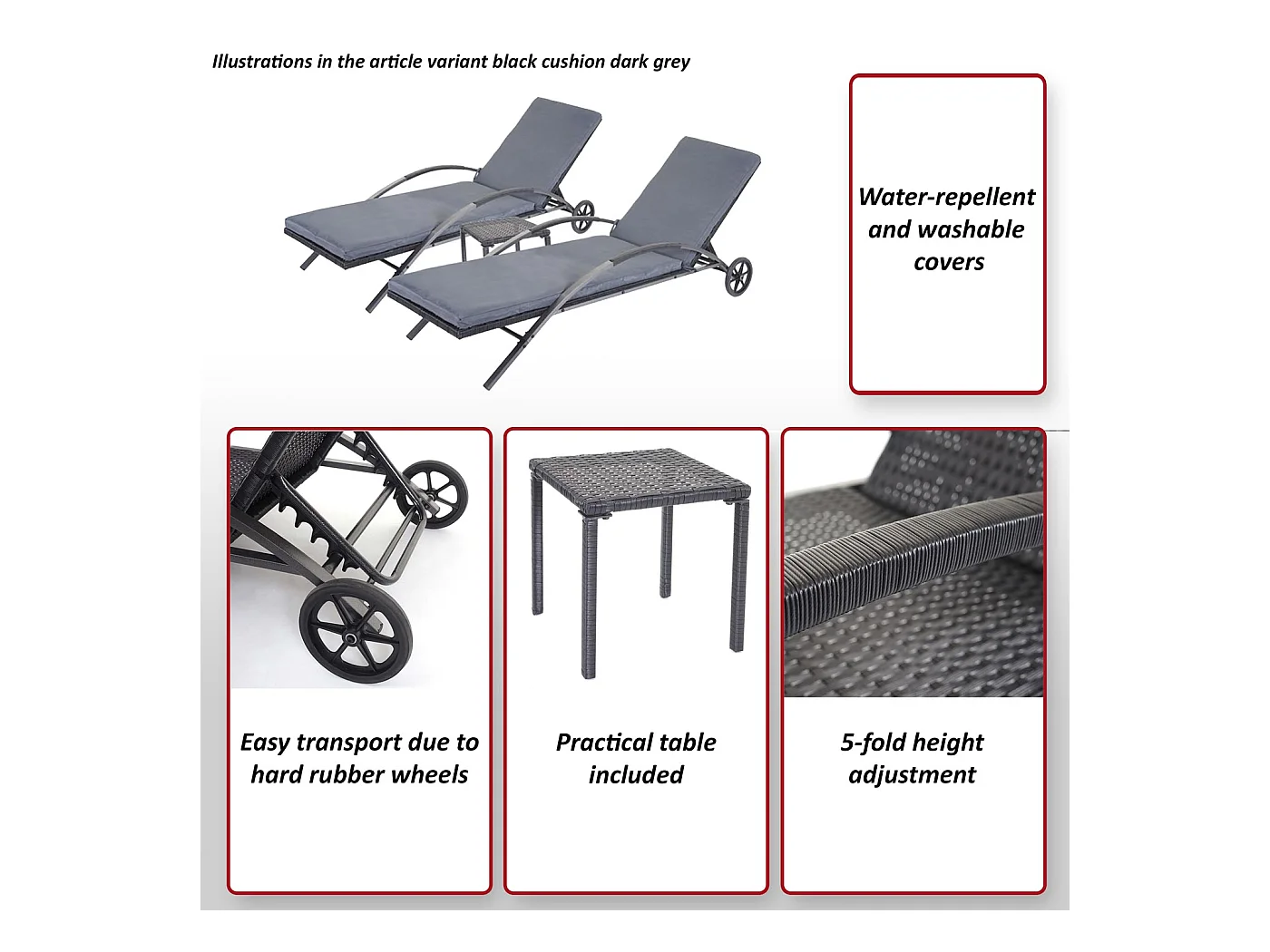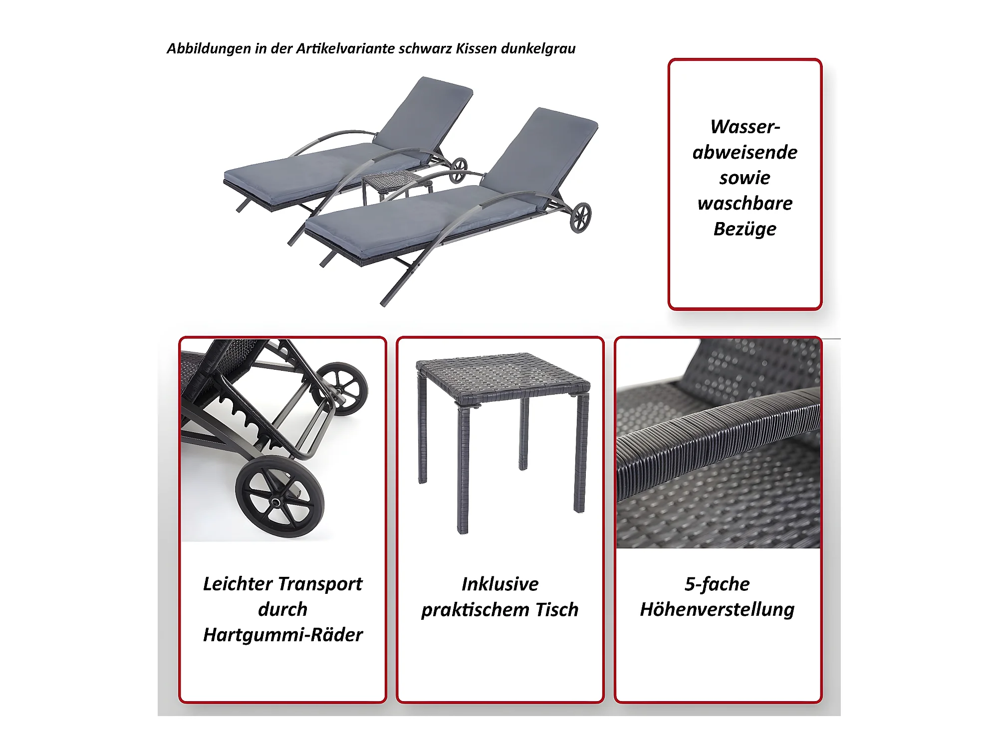 Sonnenliege Gartenliege mit Rollen Aluminium Textilbespannung Schwarz Portofino