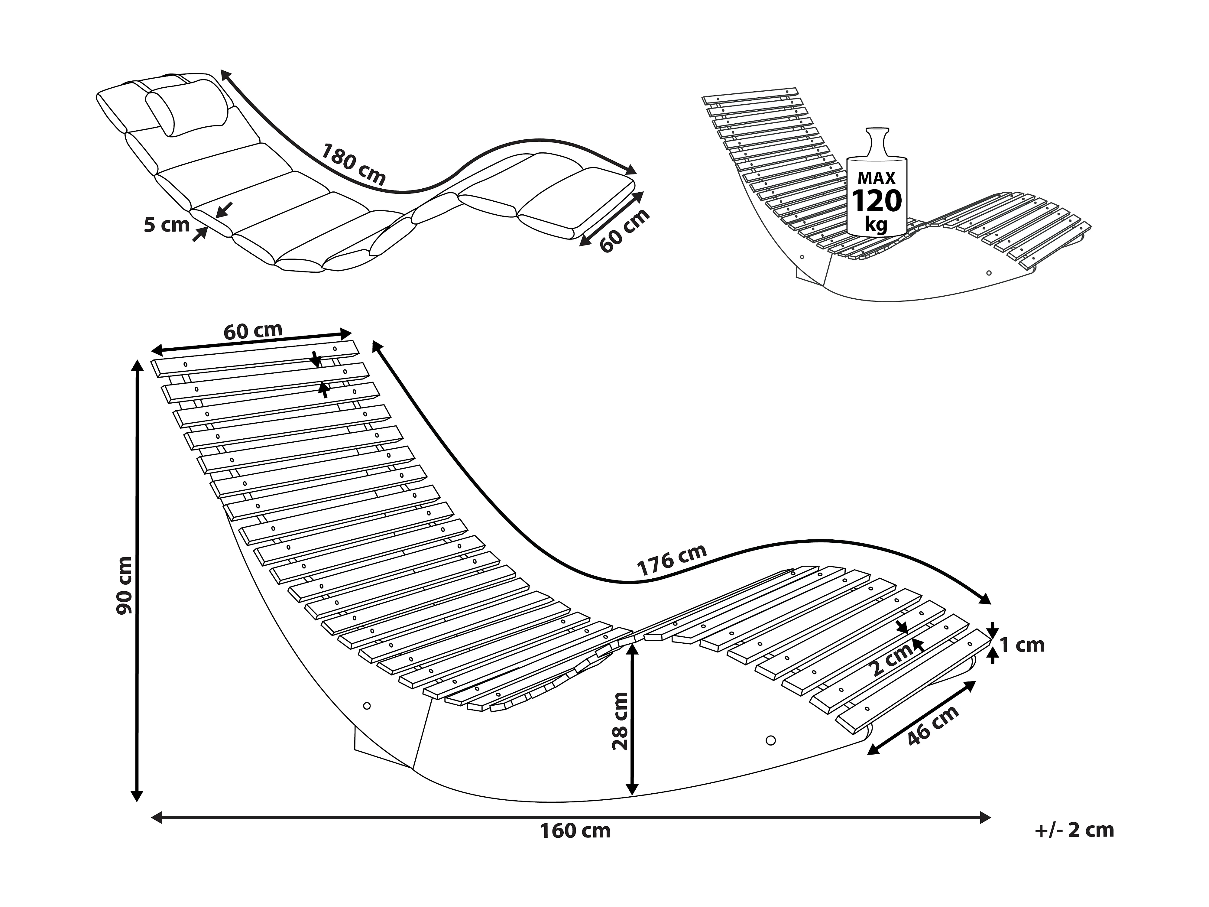 Beliani Gartenliege aus Akazienholz, rustikales Design, hochwertiges und witterungsbeständiges Material, pflegeleicht.