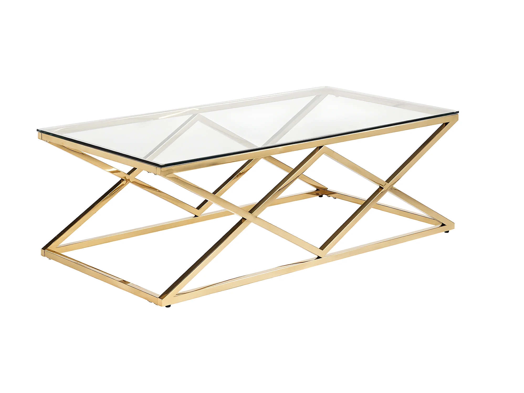 Sparset: Couchtisch - Goldfarben - CHARLOTTE + Teppich - Blau, Senfgelb & Grau - CAMDEN