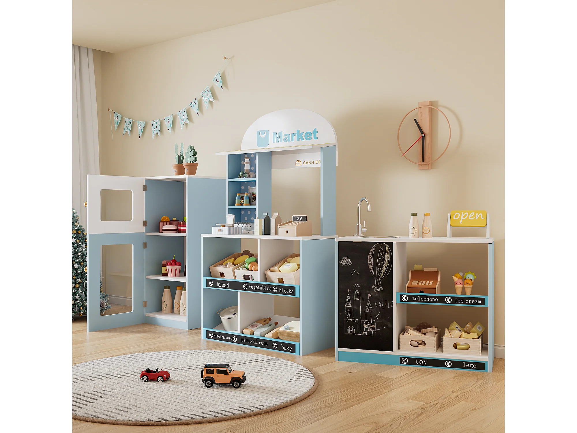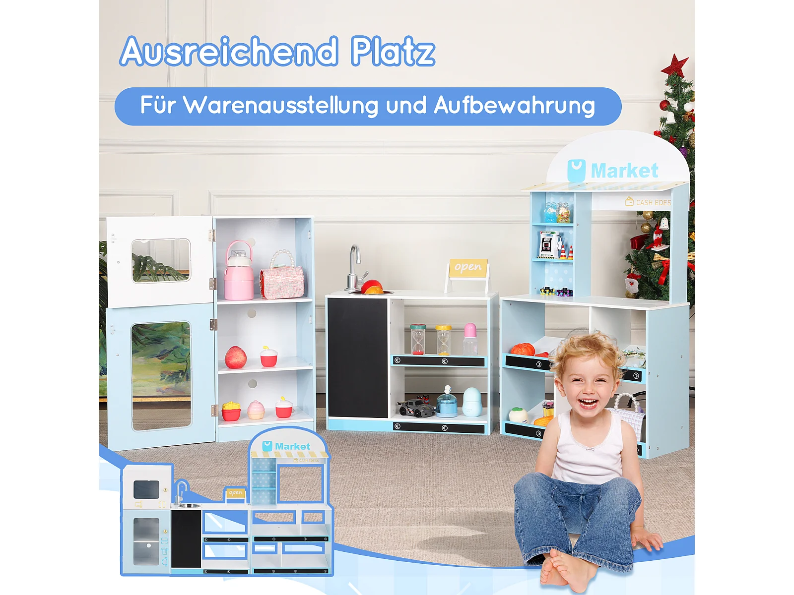 Spielküche für Kinder – 155 x 30 x 107,5 cm – Haus mit Zubehör und Effekten – Für Kinder ab 3 Jahren – MDF – Blau