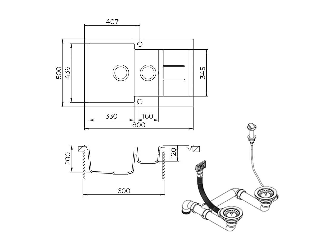 Einbauspüle 1 Becken mit reversibler Abtropffläche aus Edelstahl GROHE K200 860x500 mm