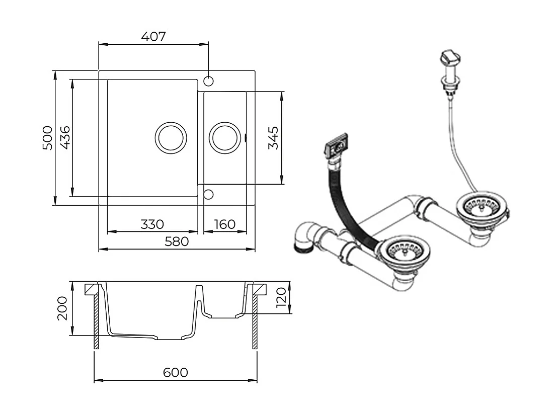 Einbauspüle 1 Becken mit reversibler Abtropffläche aus Edelstahl GROHE K200 860x500 mm