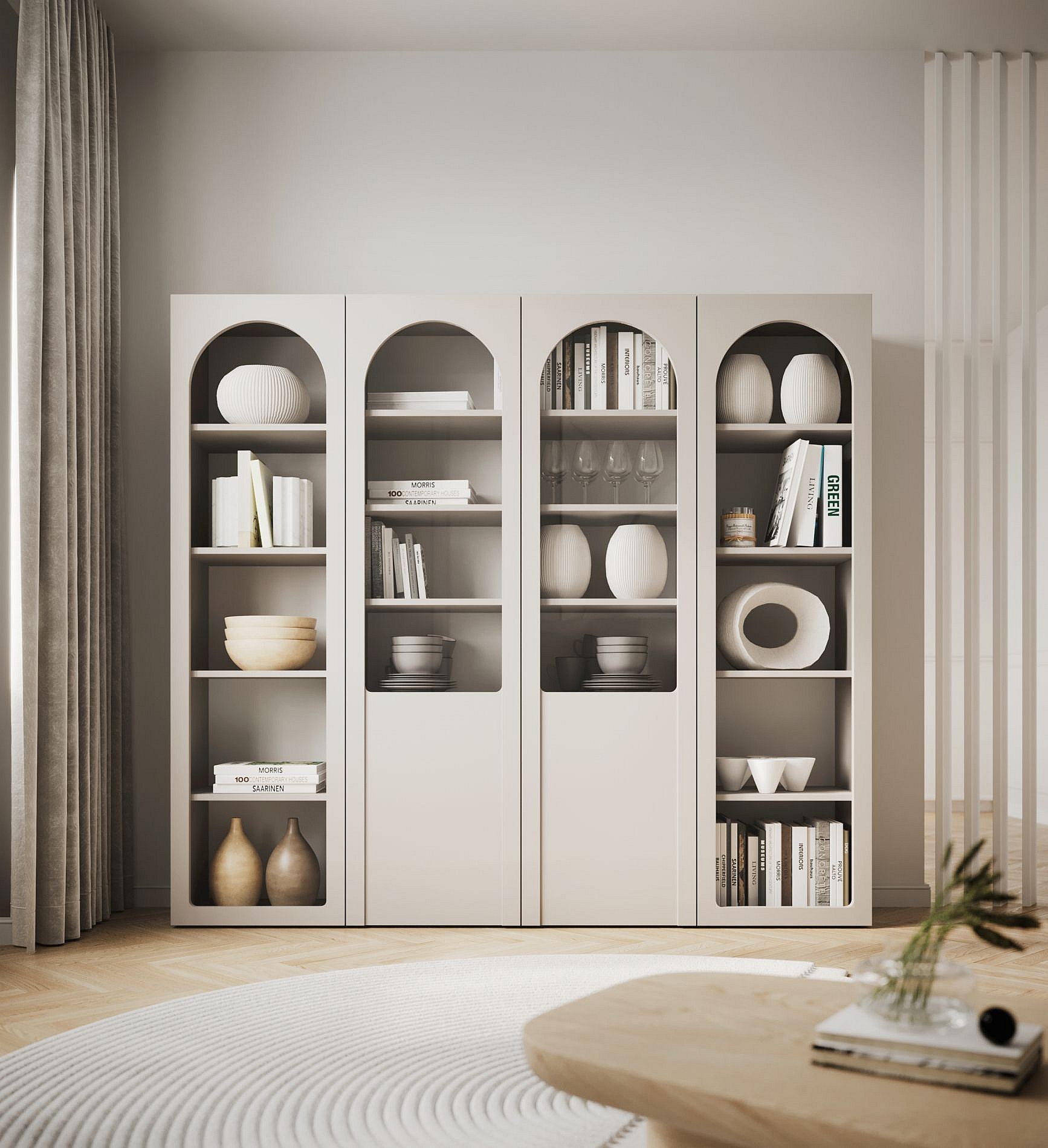 Standregal mit Bogenform – 5 offenen Fächern – Kaschmirgrau – ARKADIA
