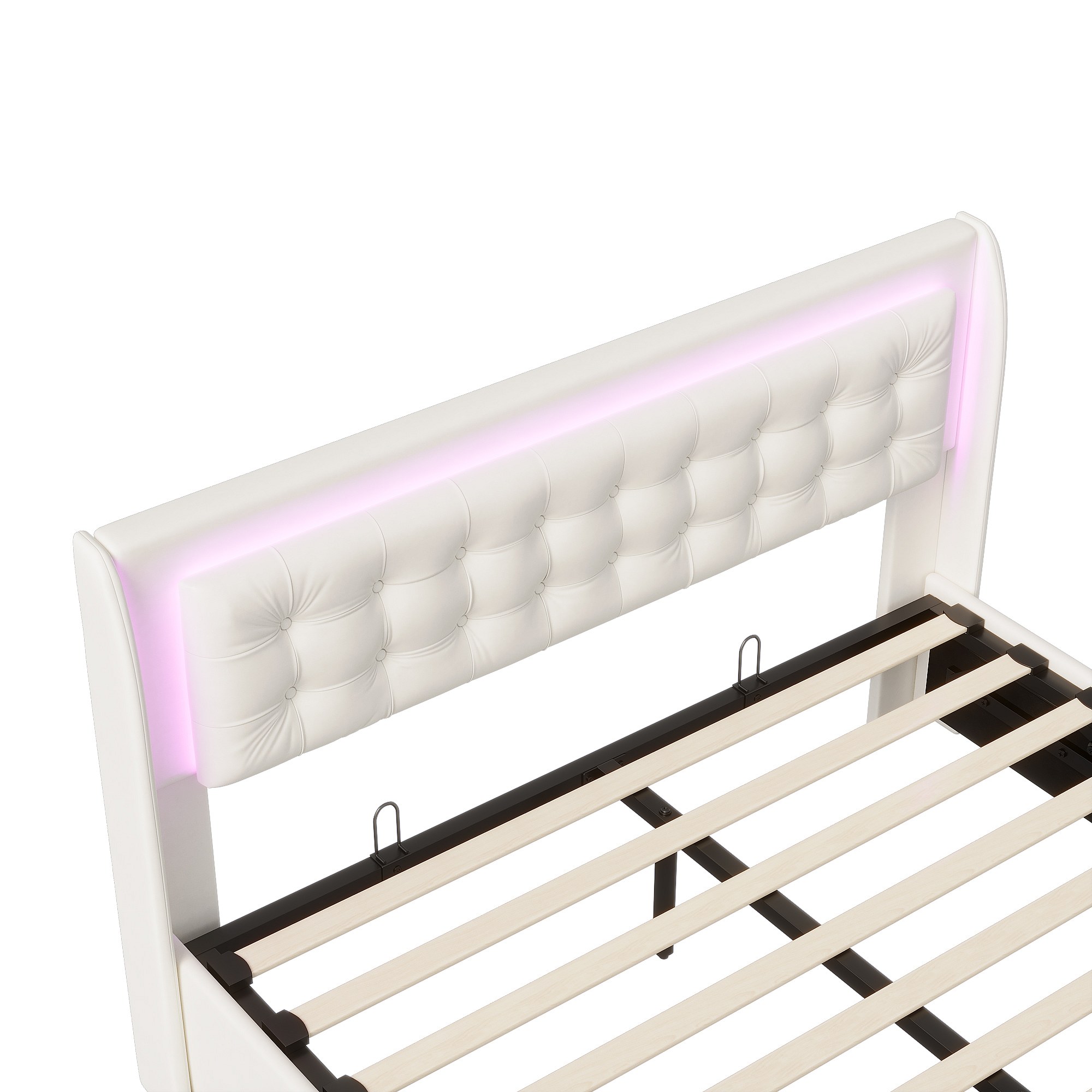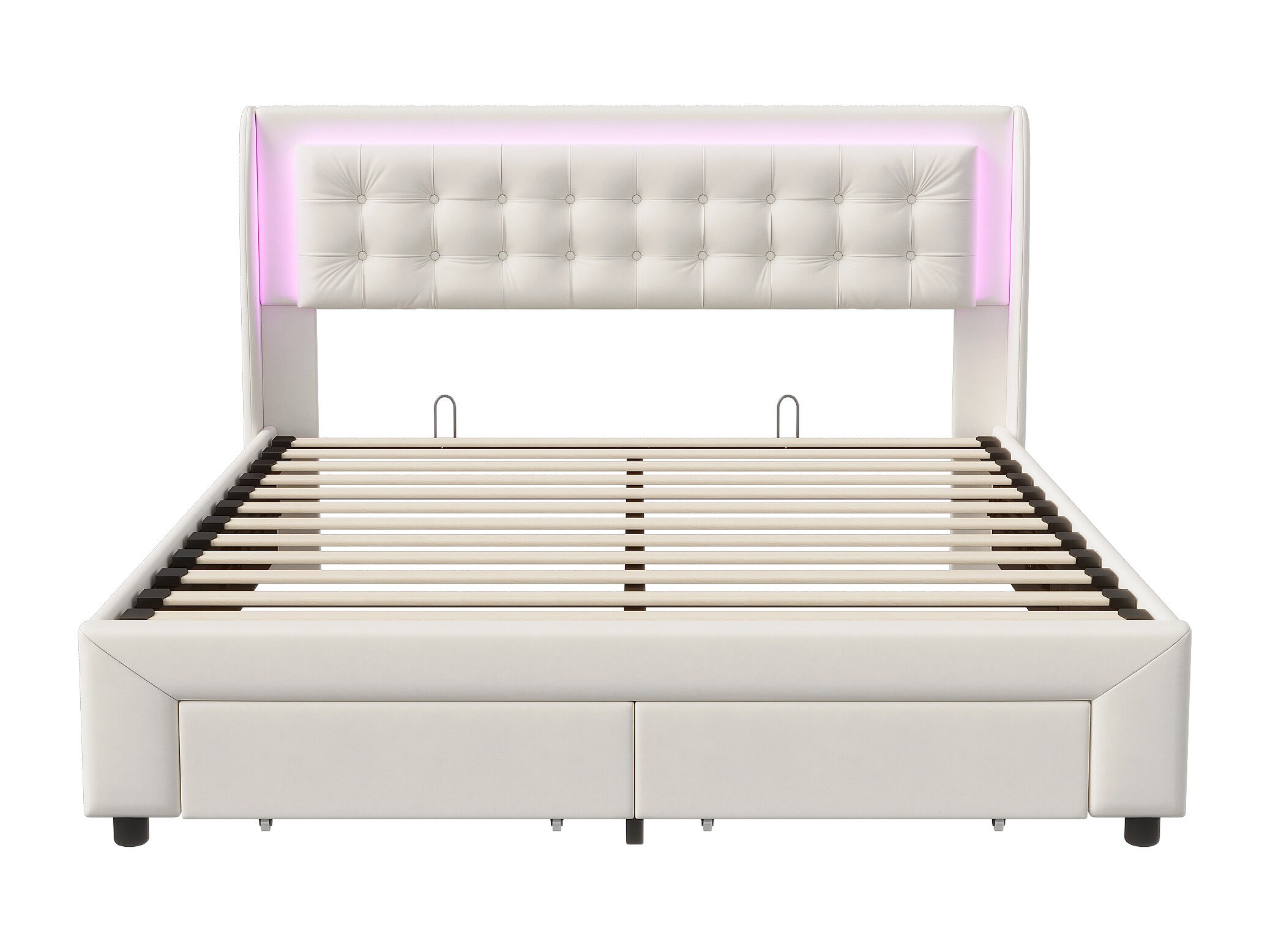 Stauraumbett 140x190cm, Doppelbett mit 2 Stauraumschubladen und LED, Lattenrost, Samt, Beige