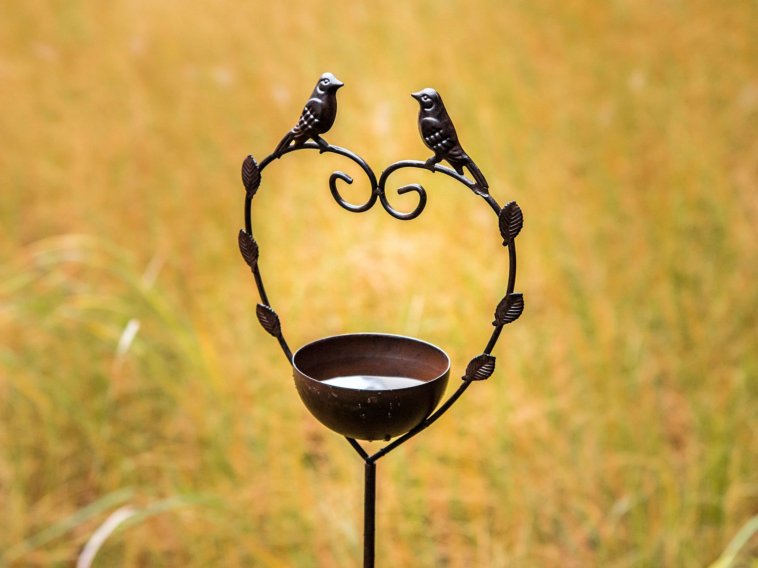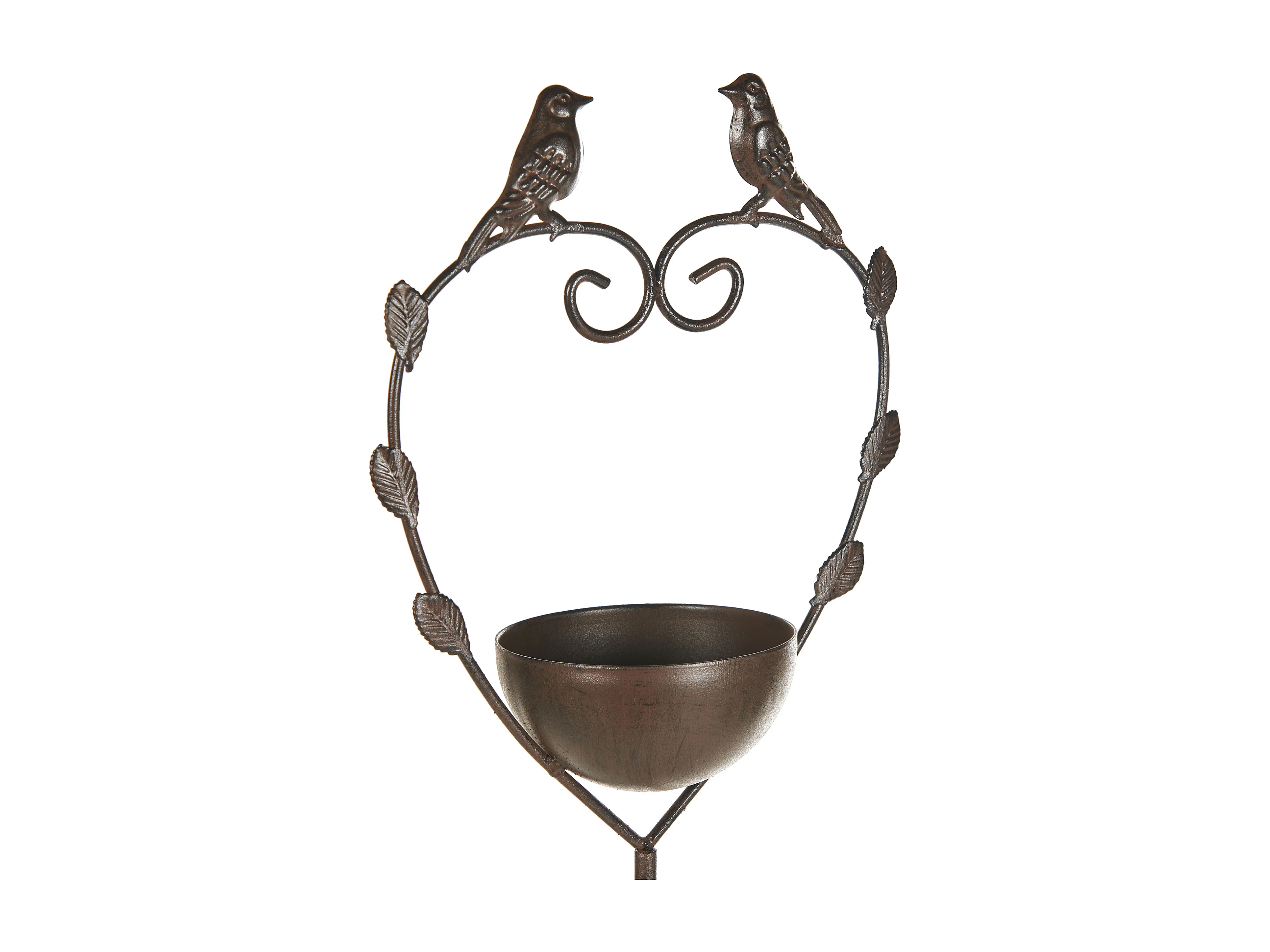 Stehende Garten Vogeltränke mit Stab Metall braun Herzform 150 cm hoch Sparrow
