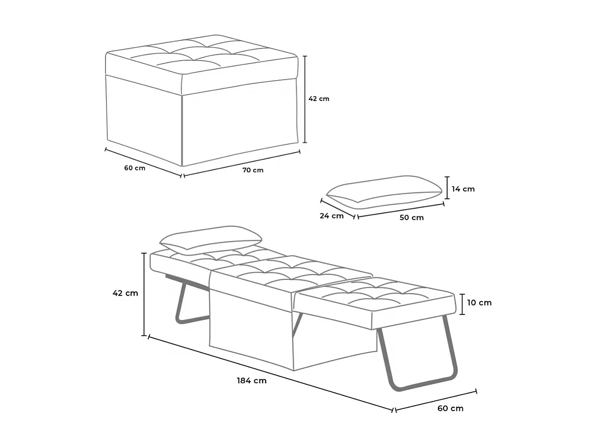 Sweet Relax Stoff Pouf Klappsessel Bett - Beige