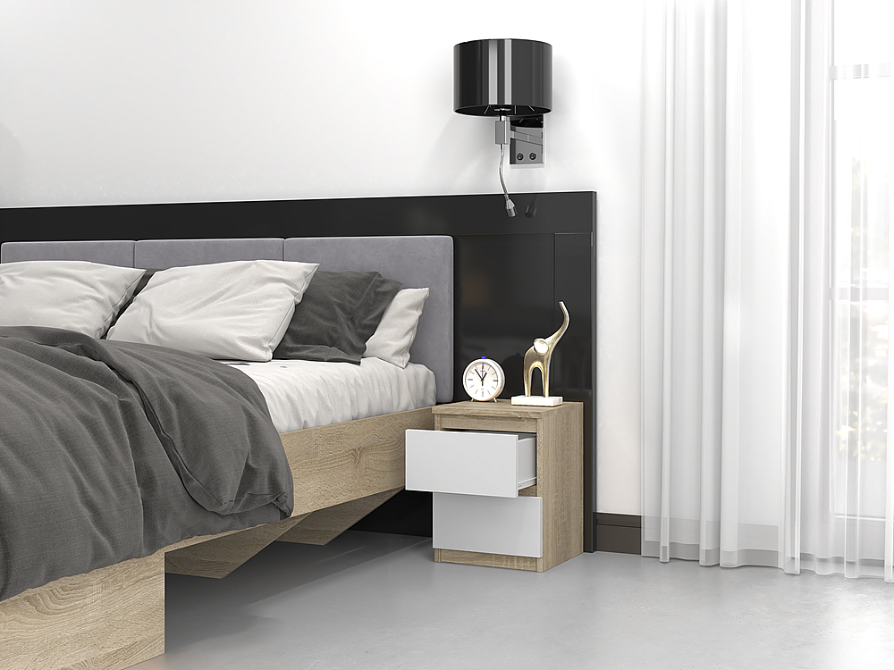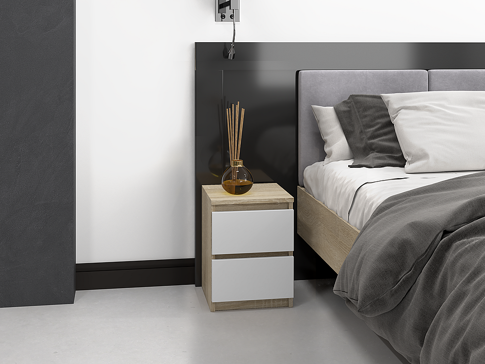 Szafka Nocna Malwa M2 | Dąb Sonoma/Biel | 30x30x40 cm | 2 Szuflady