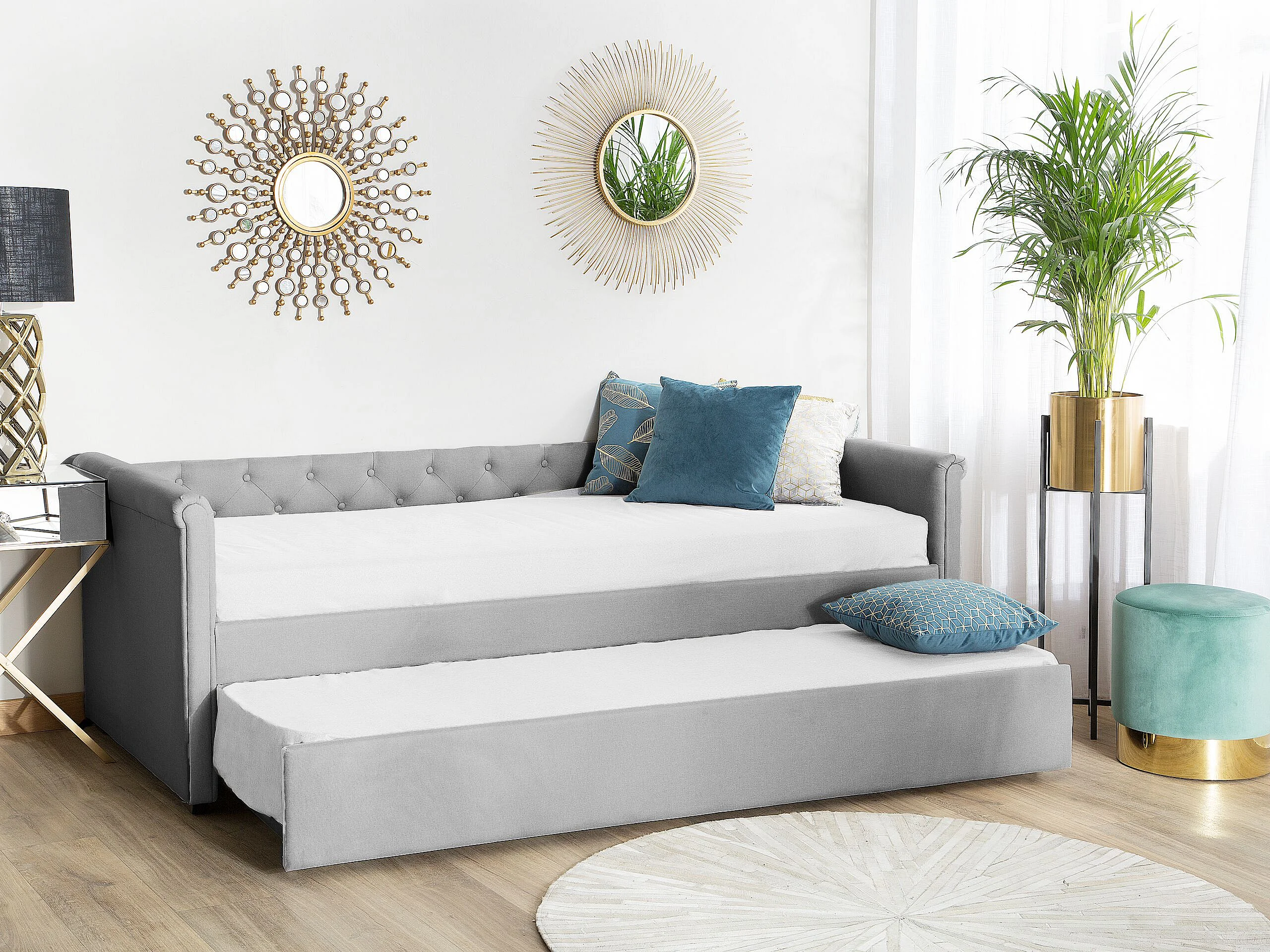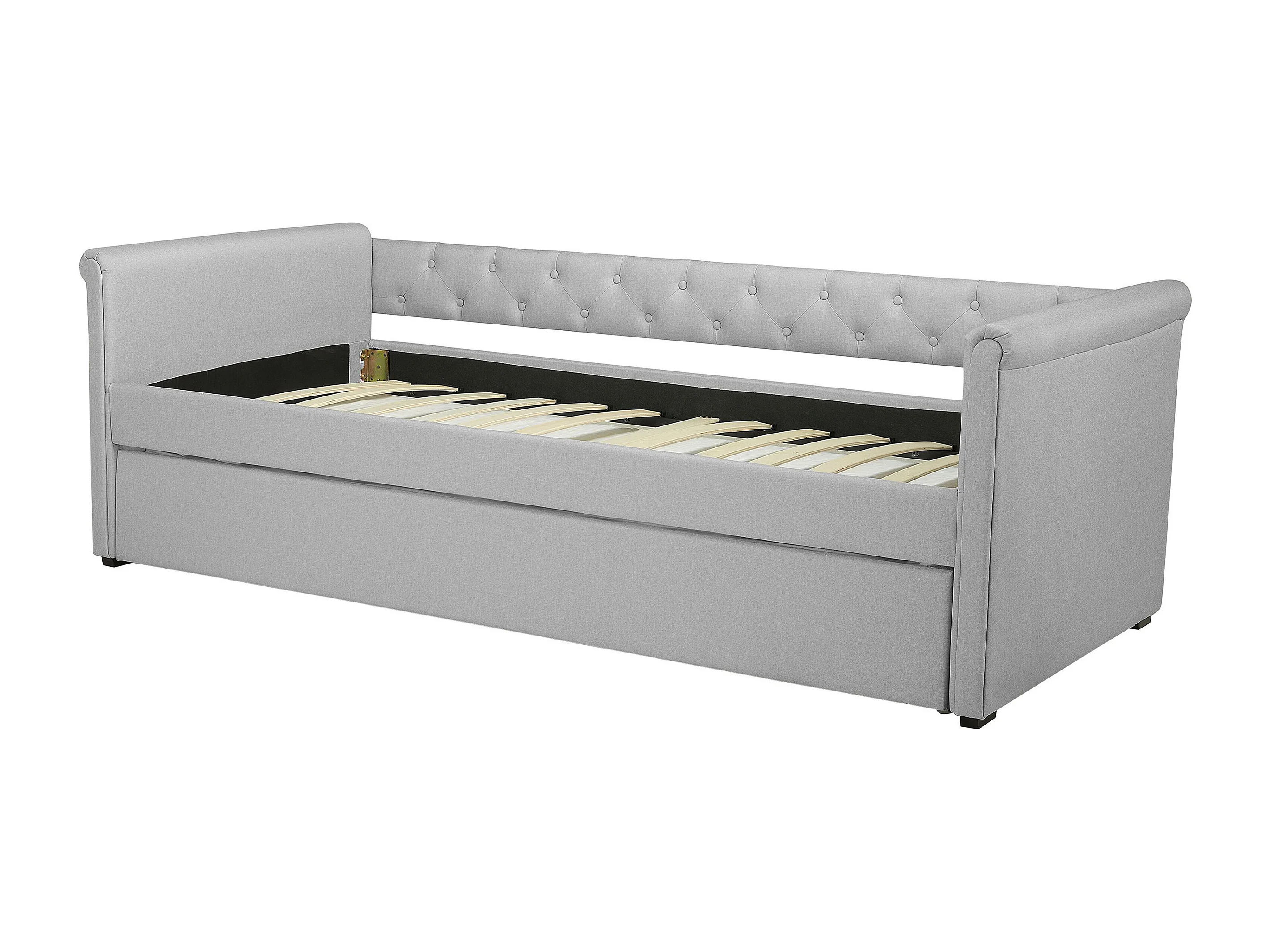 Elegantes Tandembett ausziehbar Polsterung hellgrau Leinenoptik Libourne