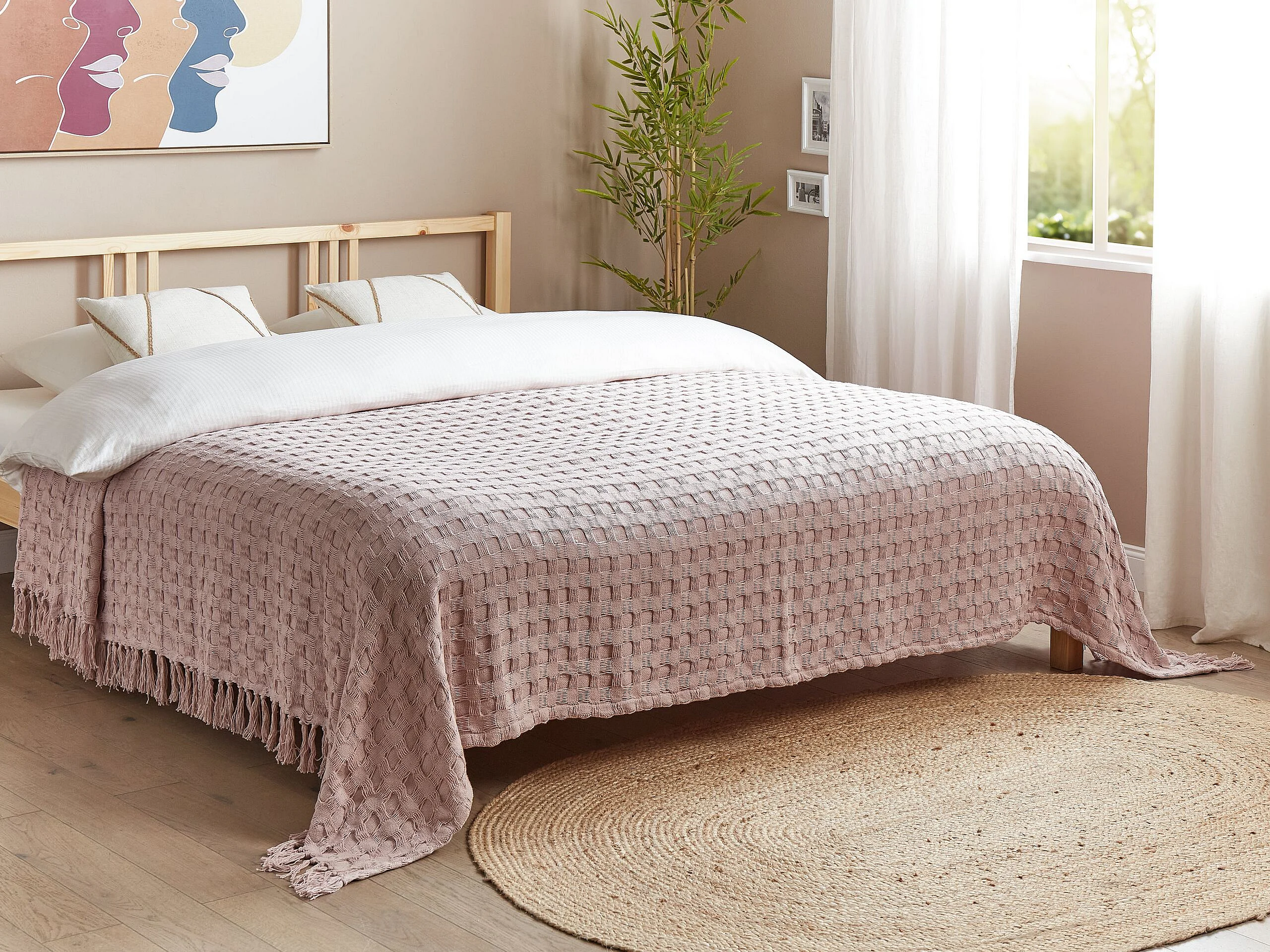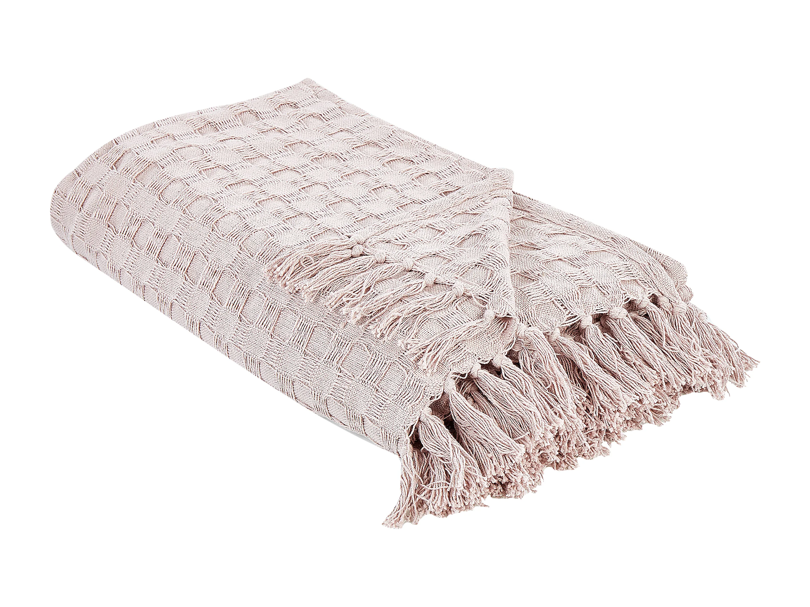Tagesdecke Baumwolle pastell rosa 220x240cm strukturiert mit Fransen modern Bere