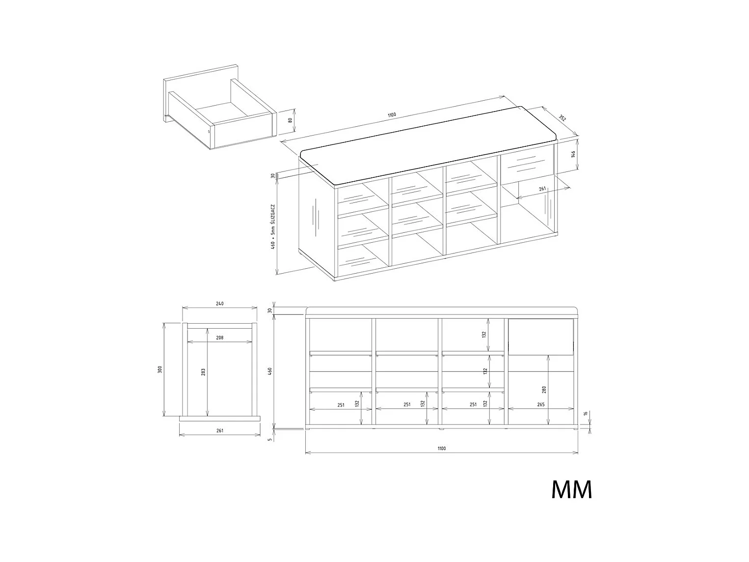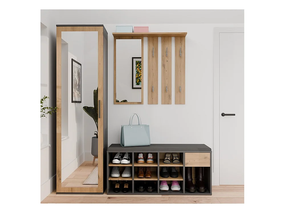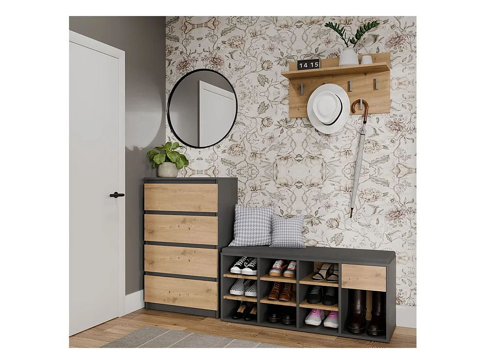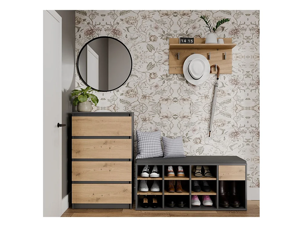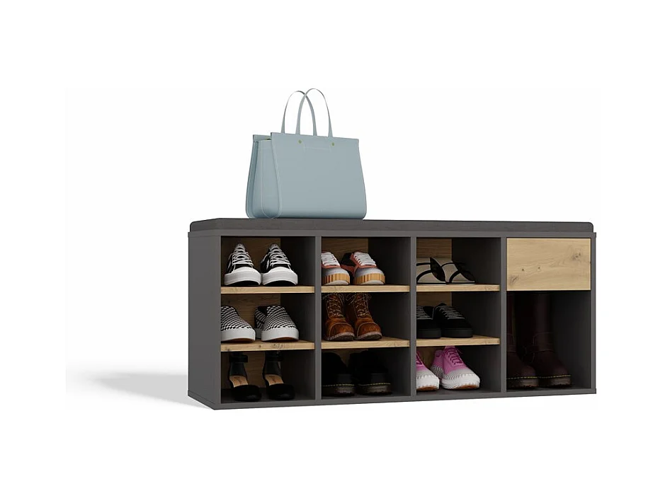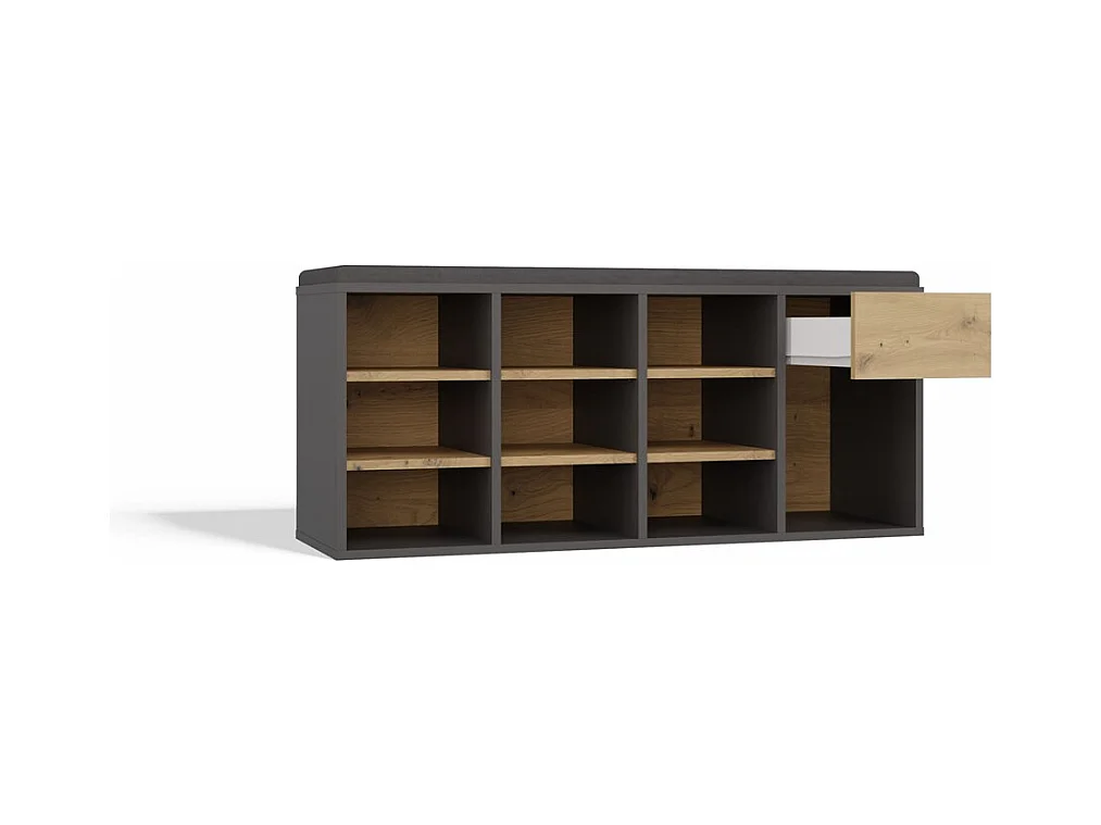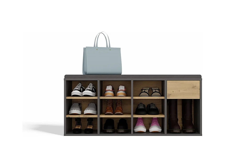 TALLIN Szafka na buty z siedziskiem | 110x35x49 cm | Antracyt/Dąb Artisan | Przedpokój, Siedzisko