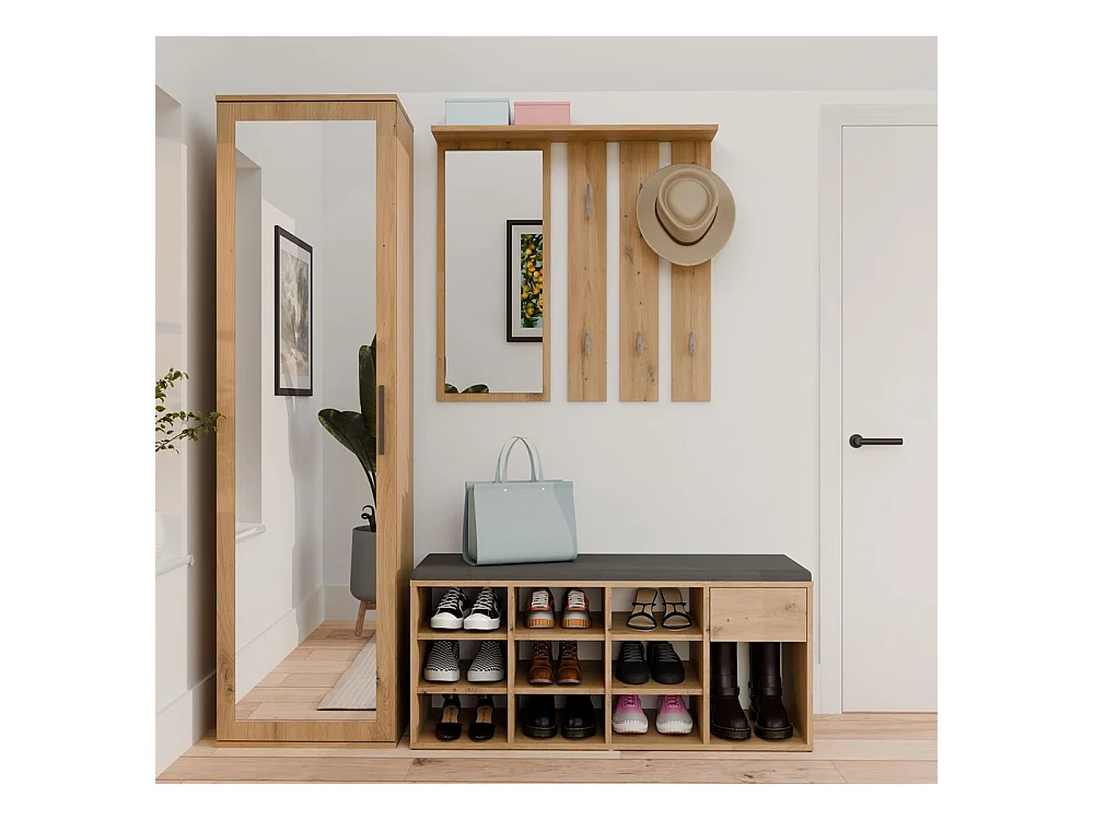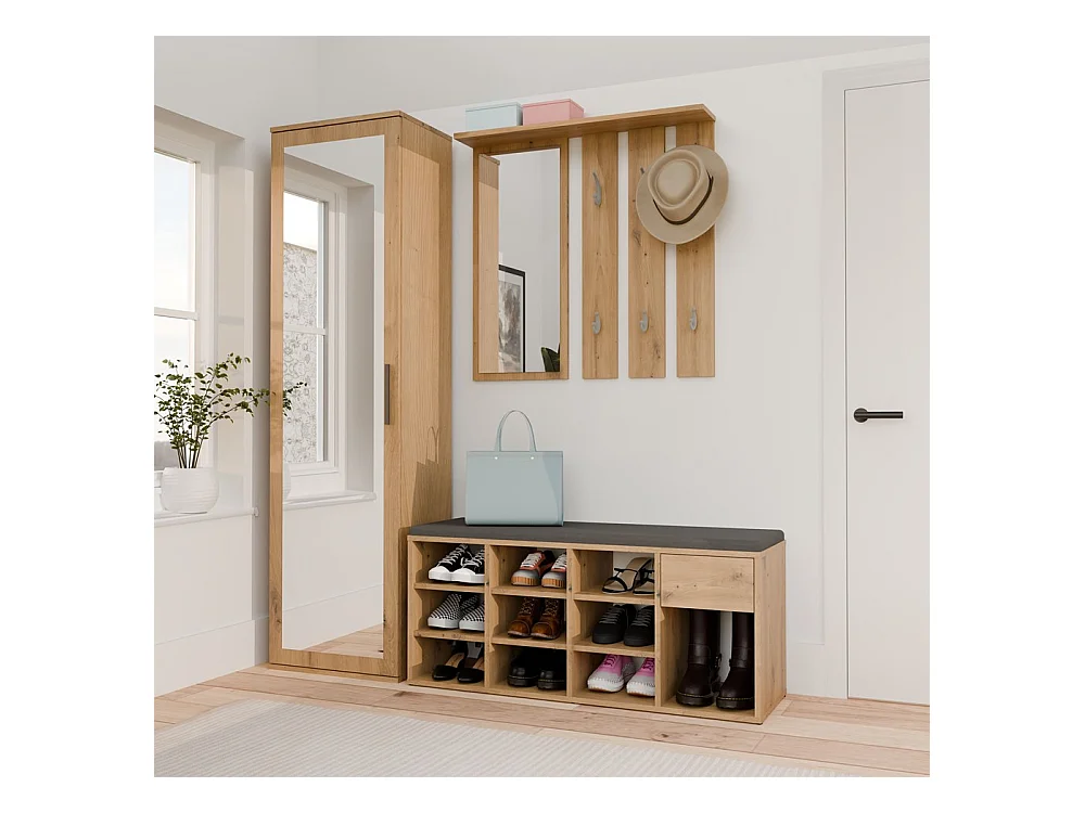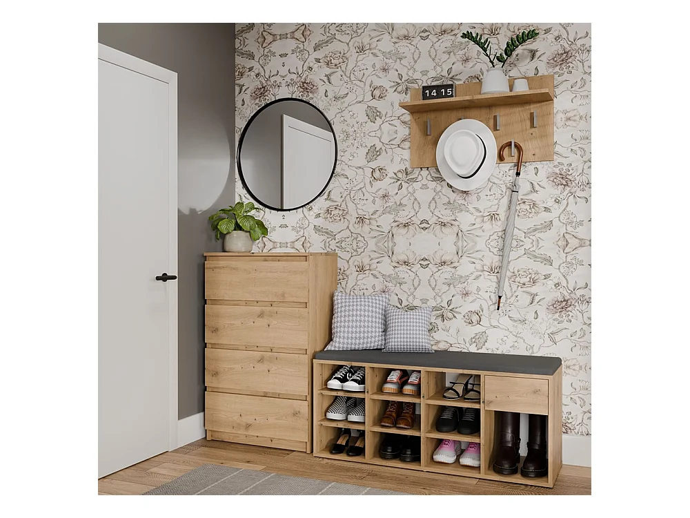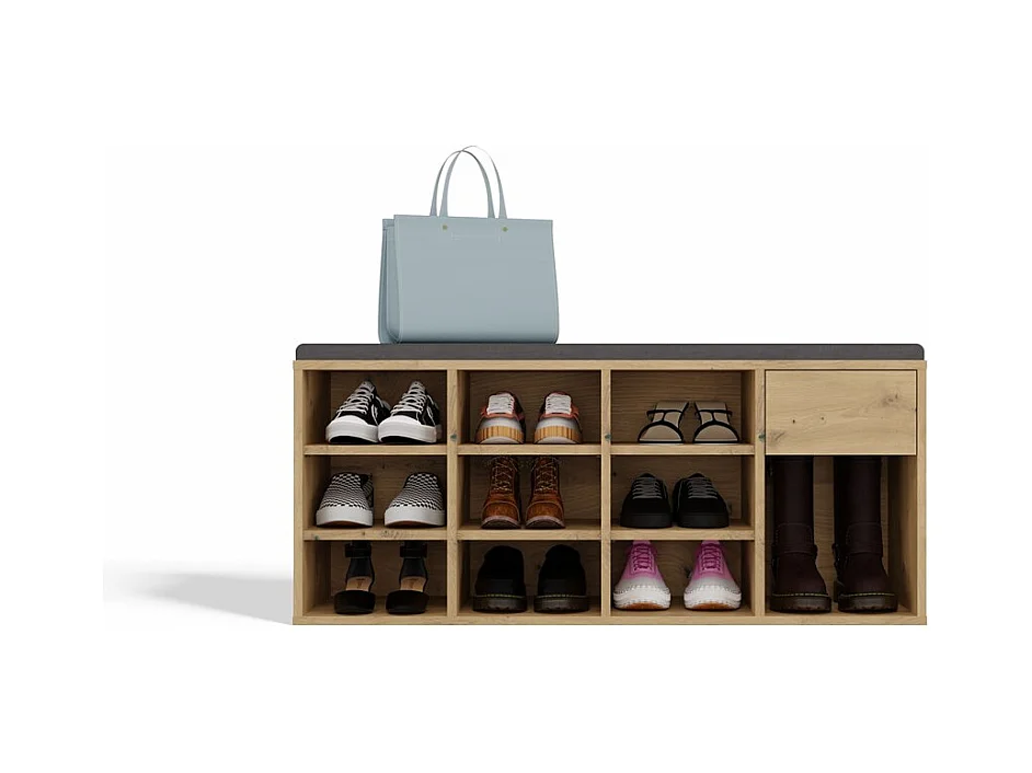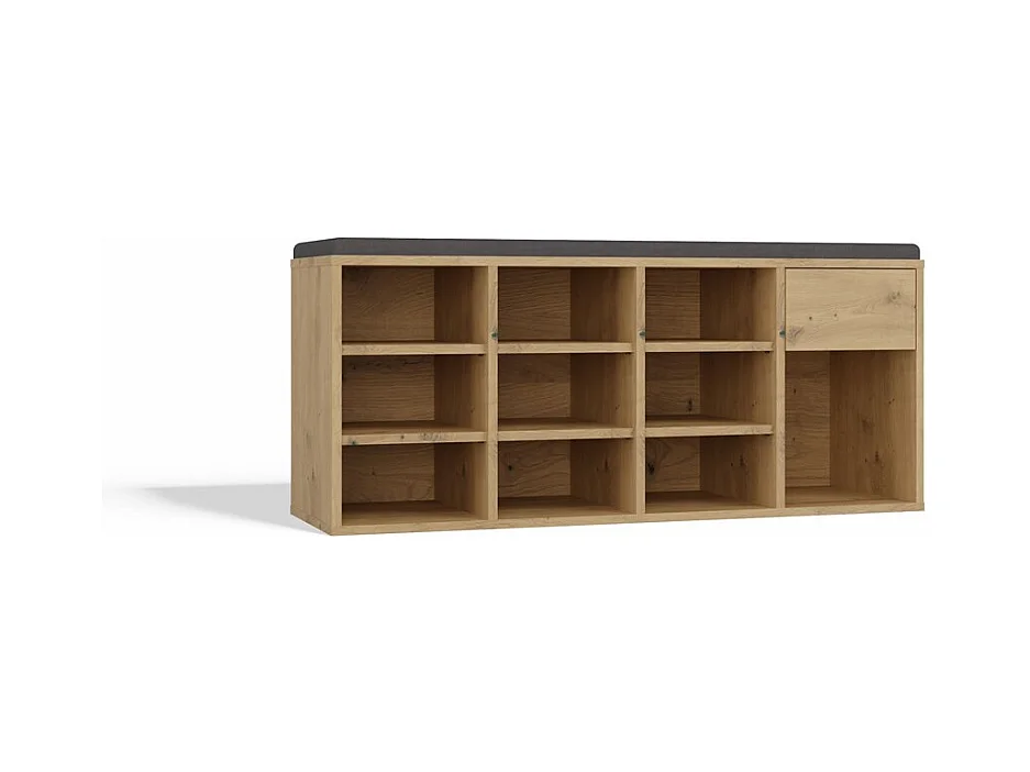 TALLIN Szafka na buty z siedziskiem i szufladą | 110x35x49 cm | Dąb Artisan |Przedpokój, Siedzisko