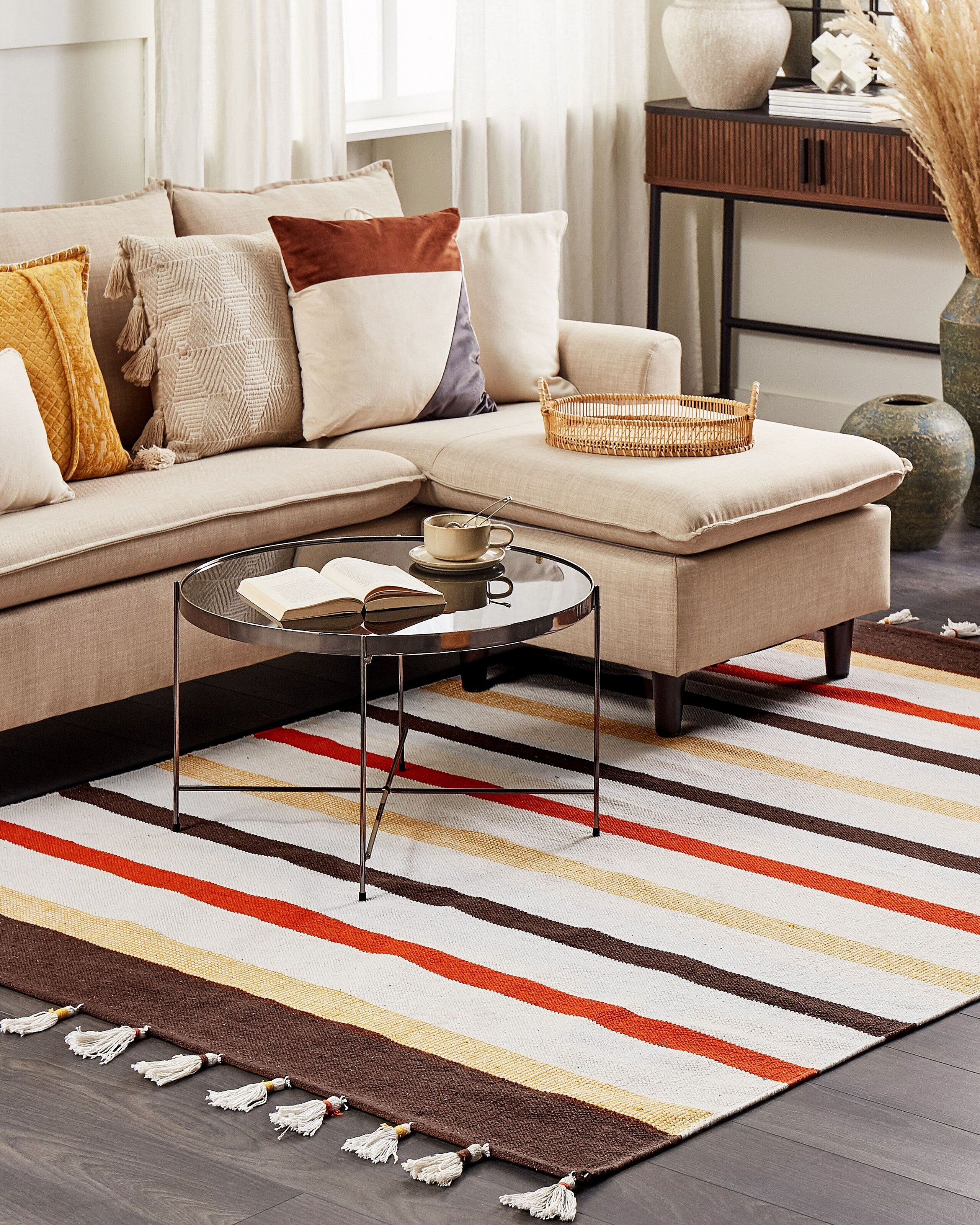 Teppich Baumwolle braun/beige gestreiftes Muster 140x200 cm mit Fransen Hisarli