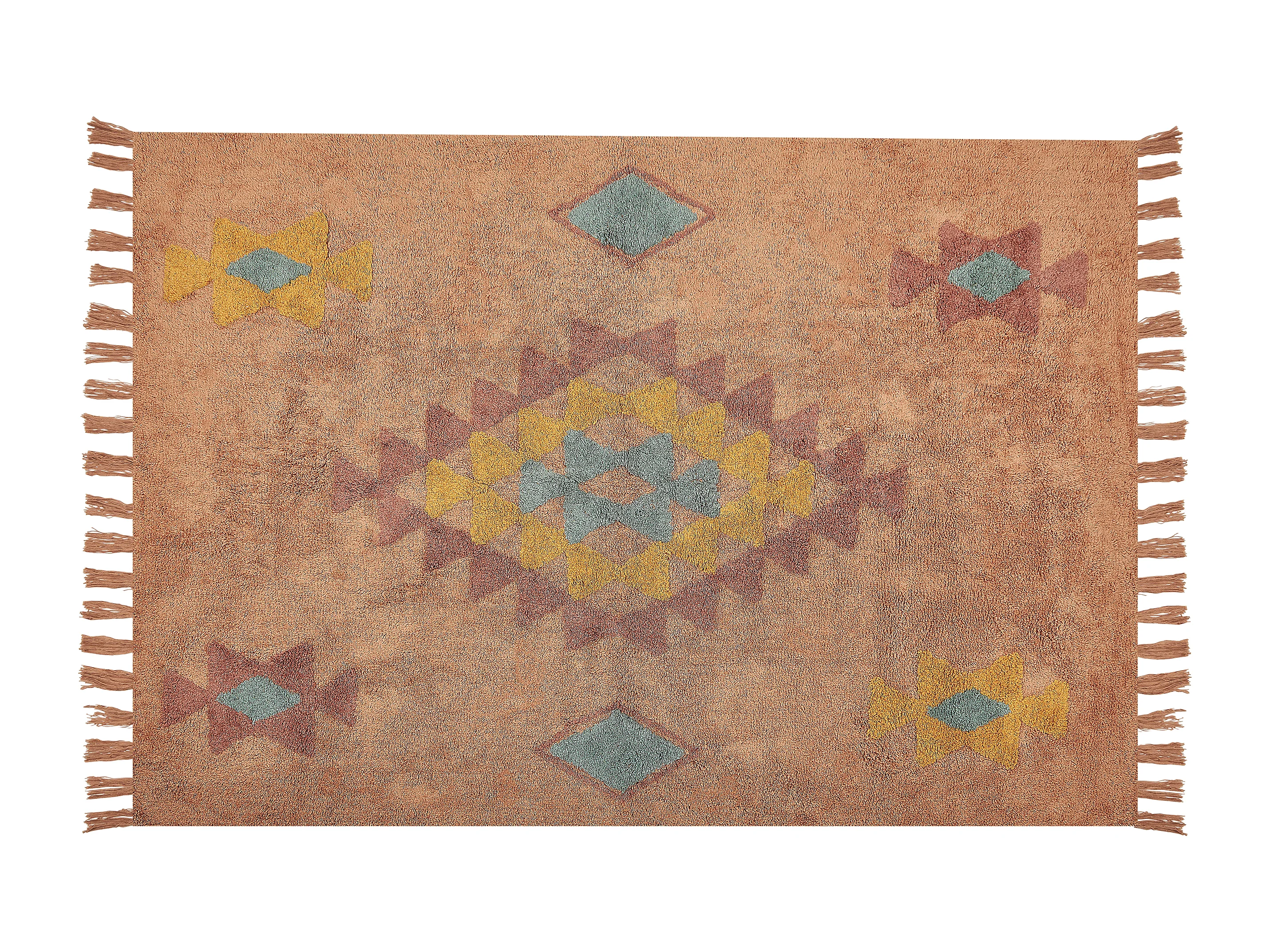 Teppich Baumwolle geometrisches Muster orange 160x230 cm mit Fransen Boho Igdir