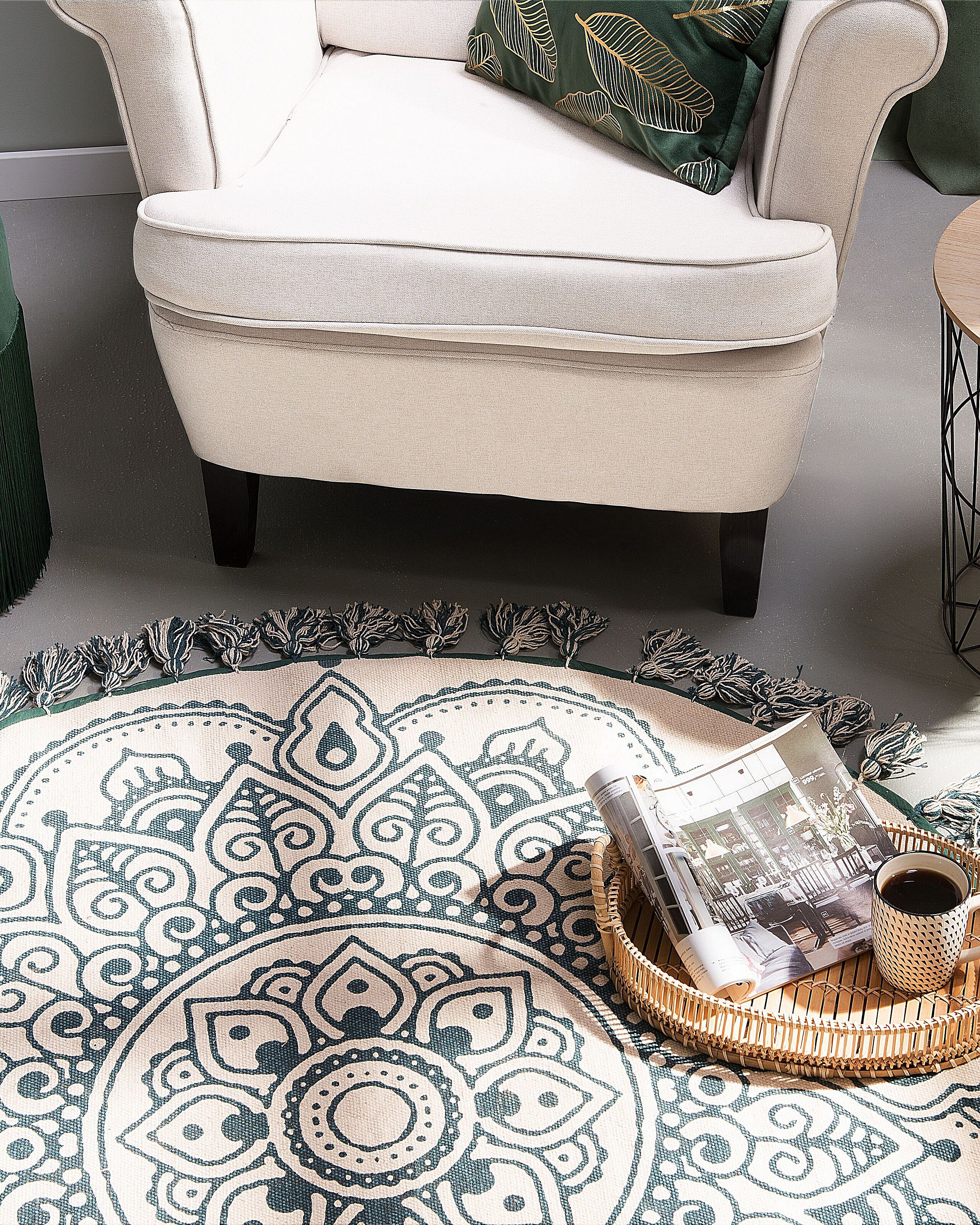 Teppich Baumwolle Mandala-Muster beige / grün rund dia. 120 cm Irice