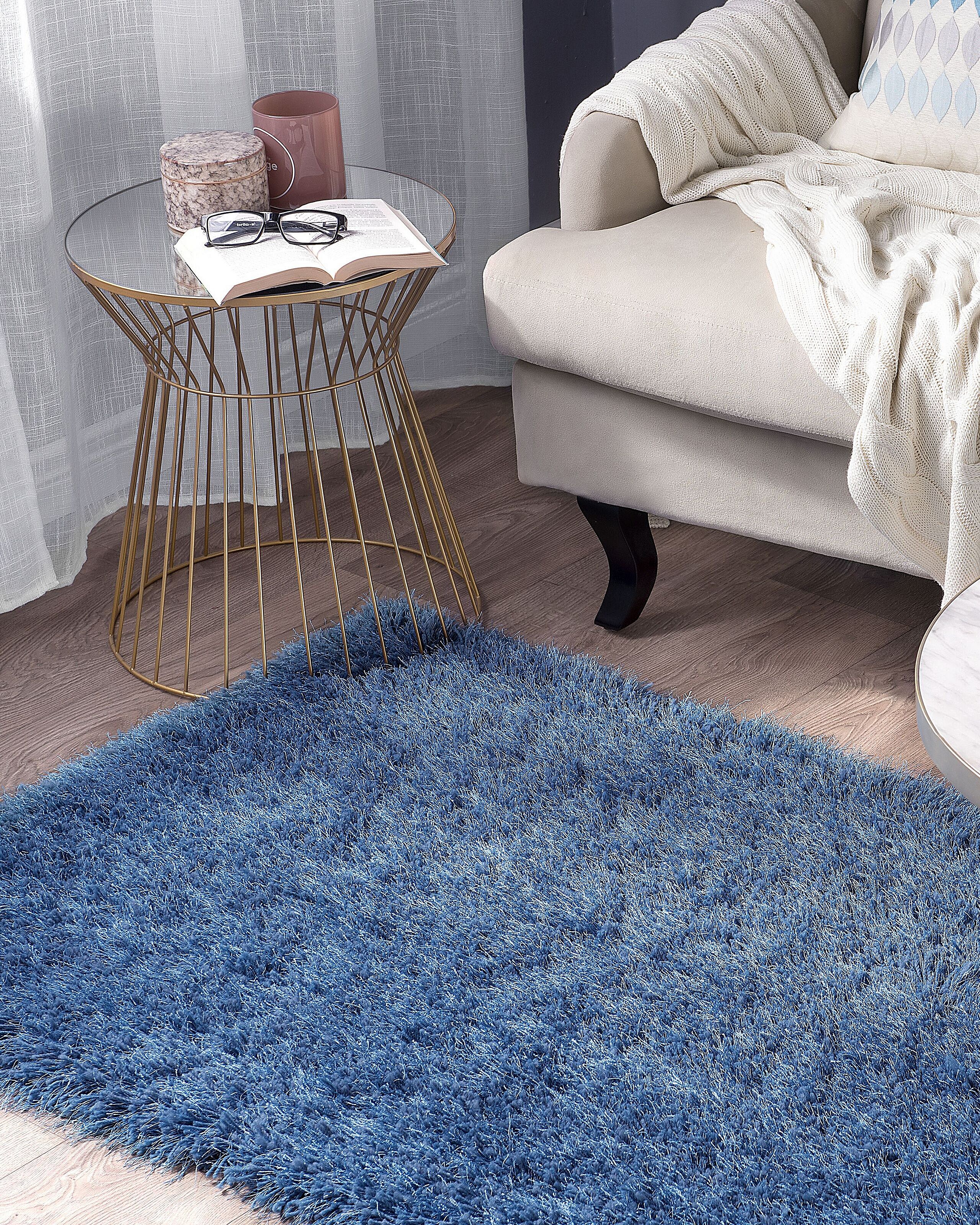 Eleganter blauer Teppich aus Polyester Hochflor 80 x 150 cm Cide