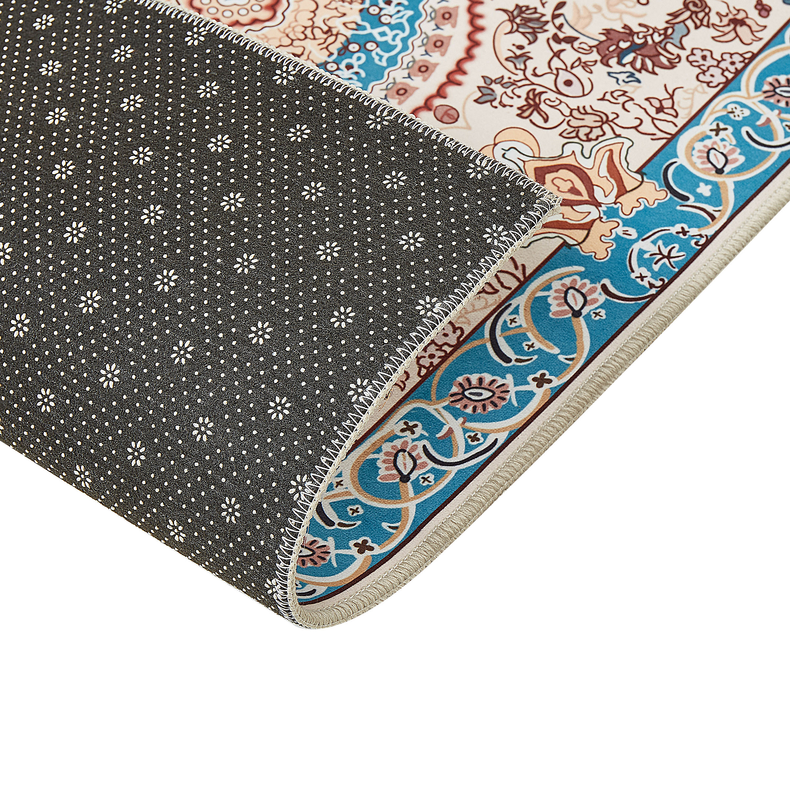 Teppich blau / hellbeige 80 x 300 cm orientalisches Muster Kurzflor GORDES