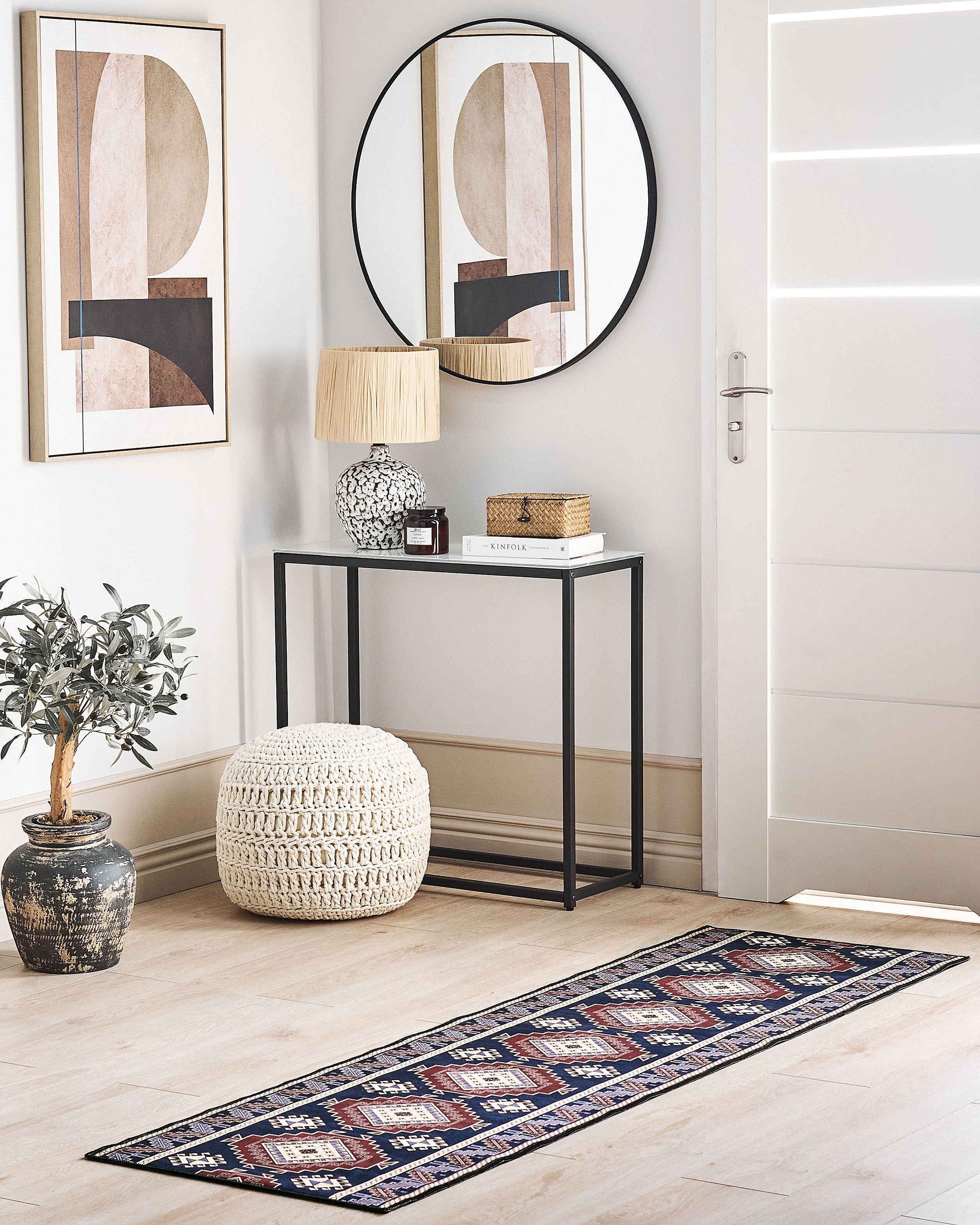 Teppich dunkelblau / dunkelrot 60 x 200 cm orientalisches Muster Kurzflor KANGAL