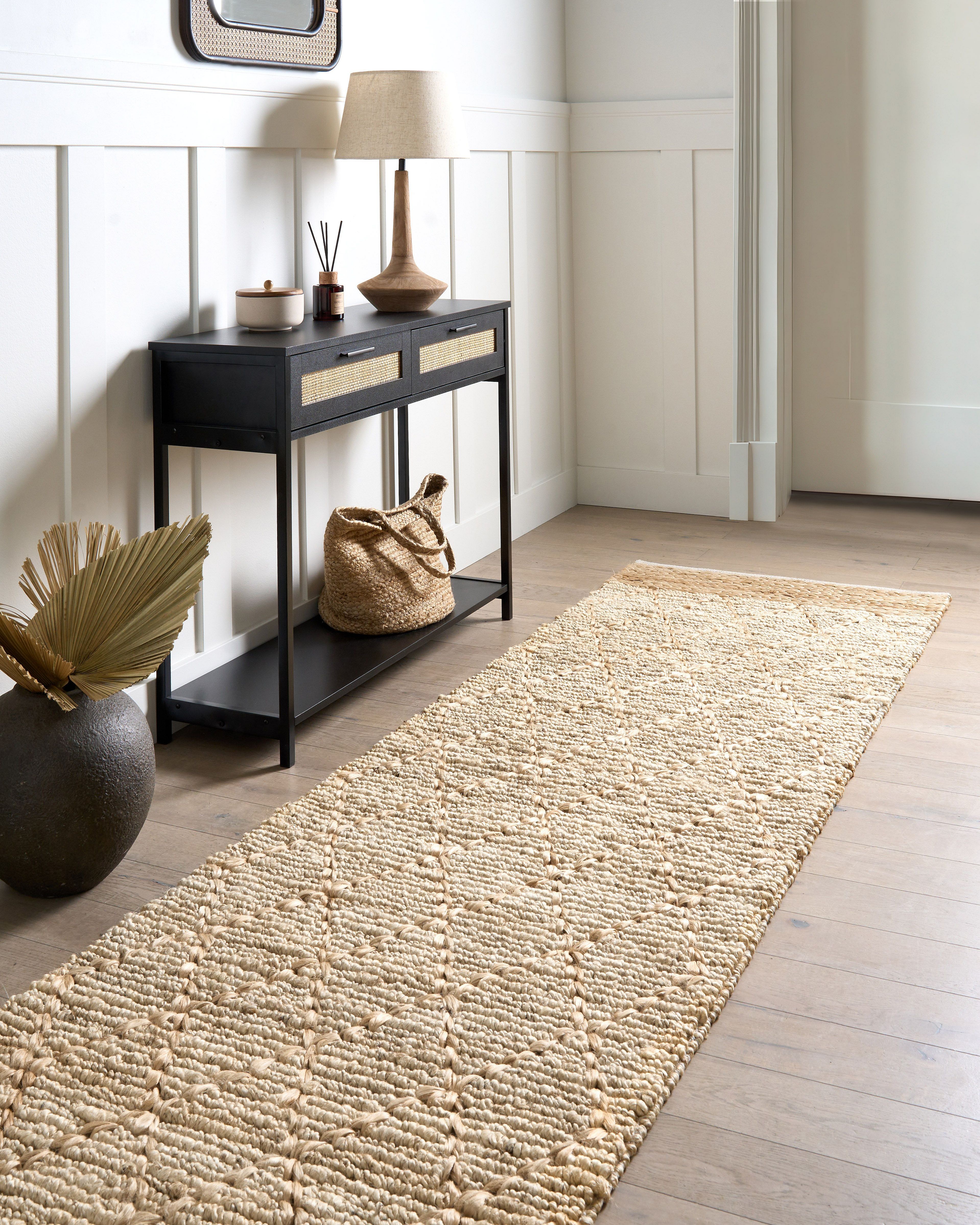 Teppich Jute beige rechteckig 80x300 cm geometrisches Muster Tellikaya