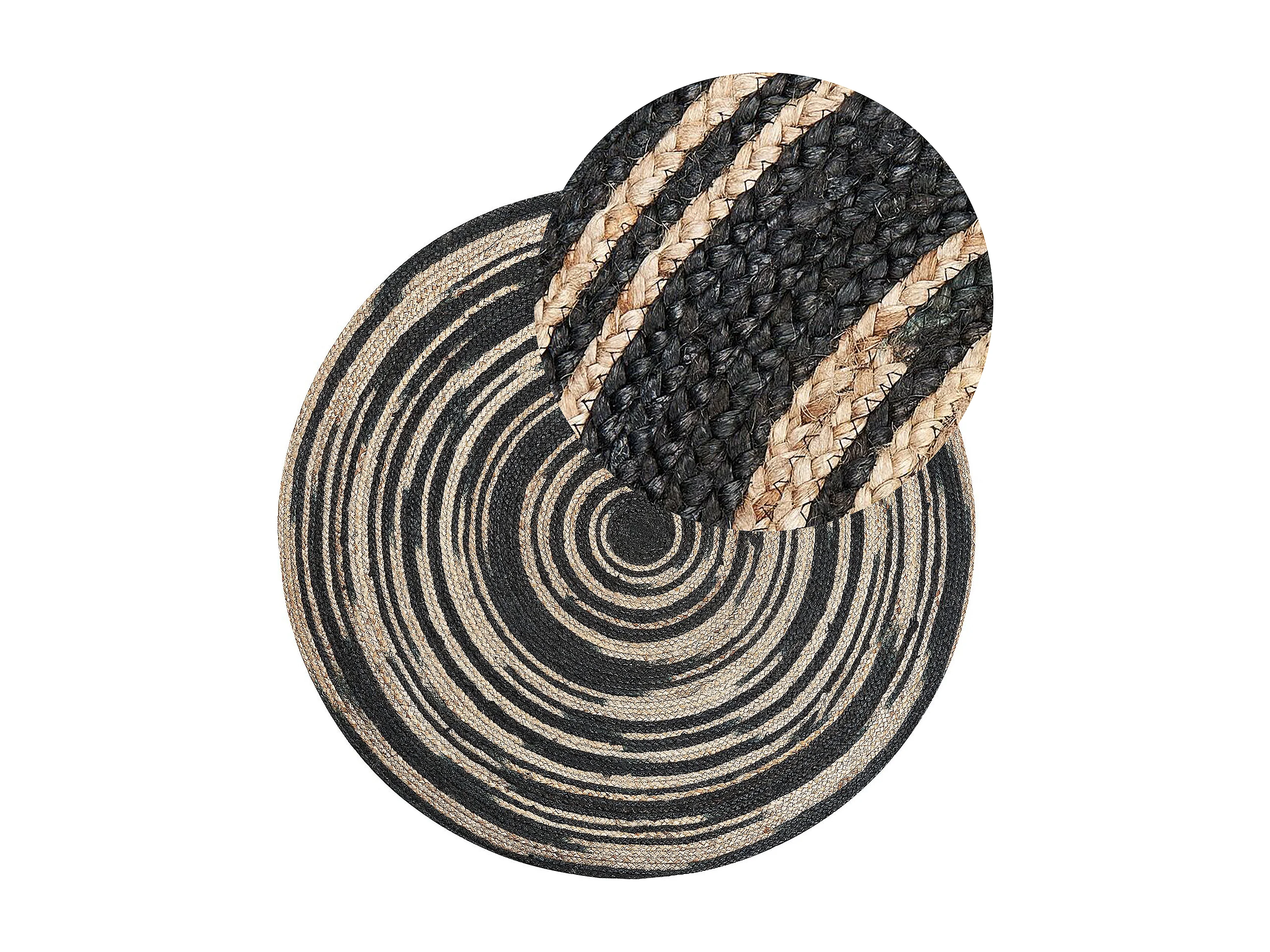 Runder Teppich Jute beige/schwarz ⌀ 140 cm Spiral Muster Boho Stil Artora