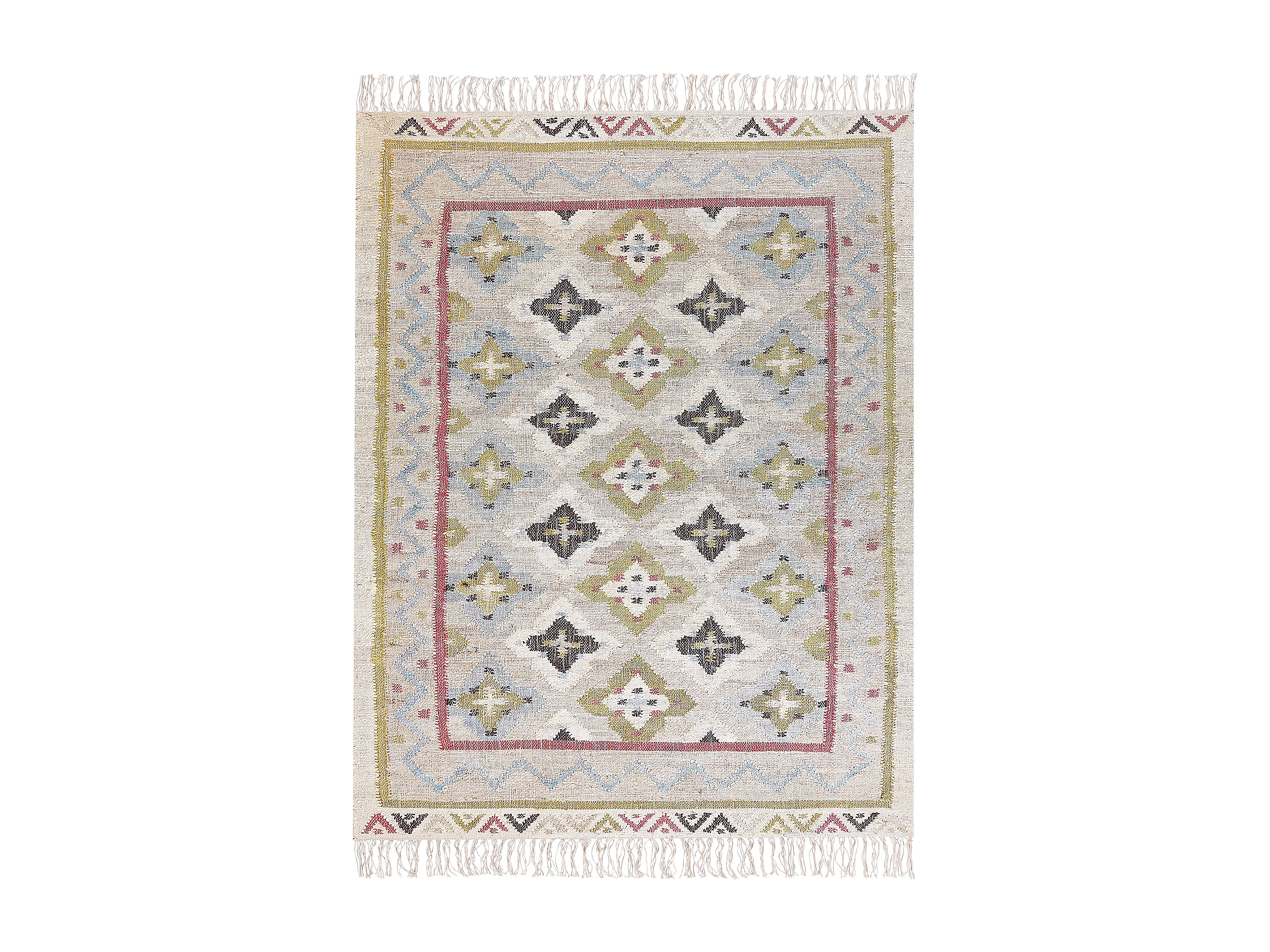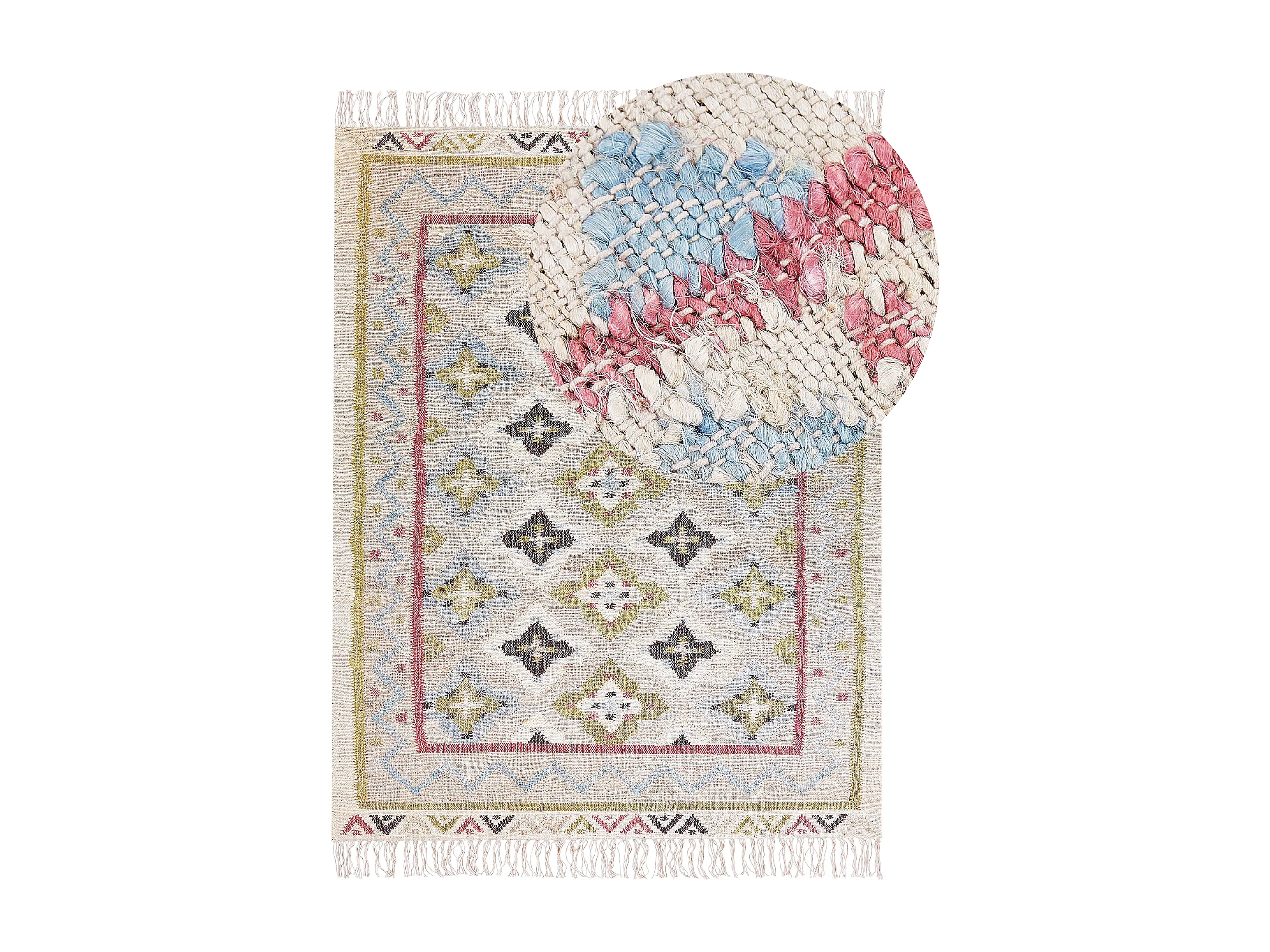 Teppich Jute beige/bunt 160x230 cm orientalisches Muster Fransen Kurzflor Terkos