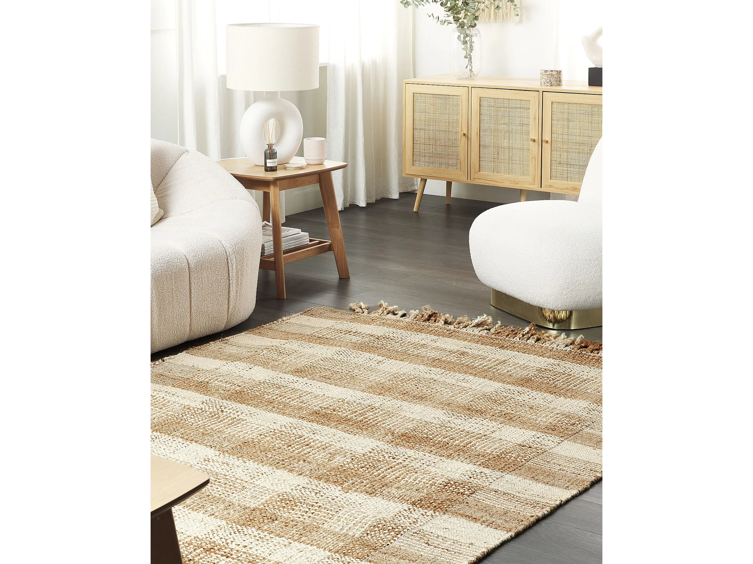 Teppich Jute natürlich beige 140 x 200 cm Fransen geometrisches Muster Berissa