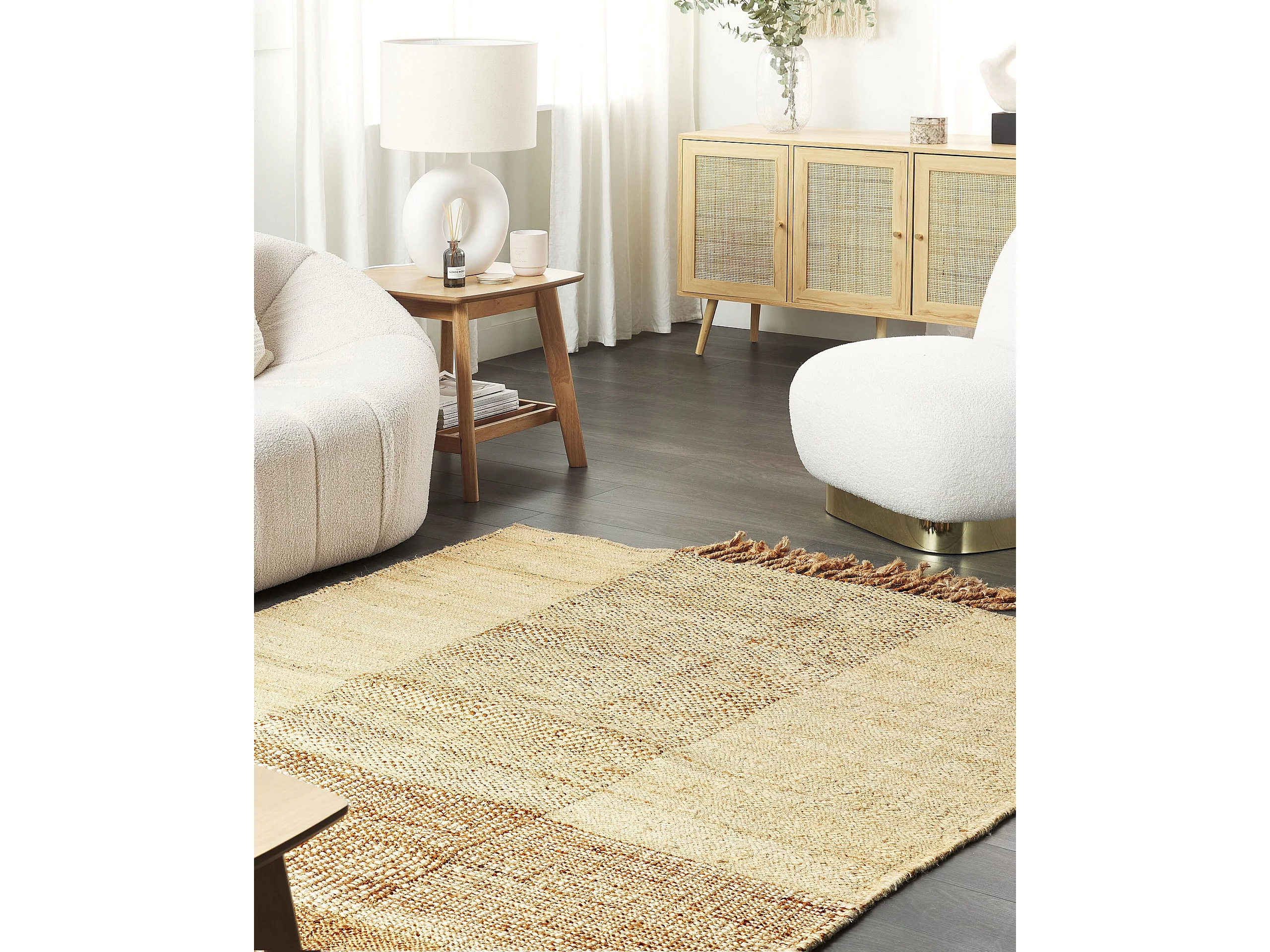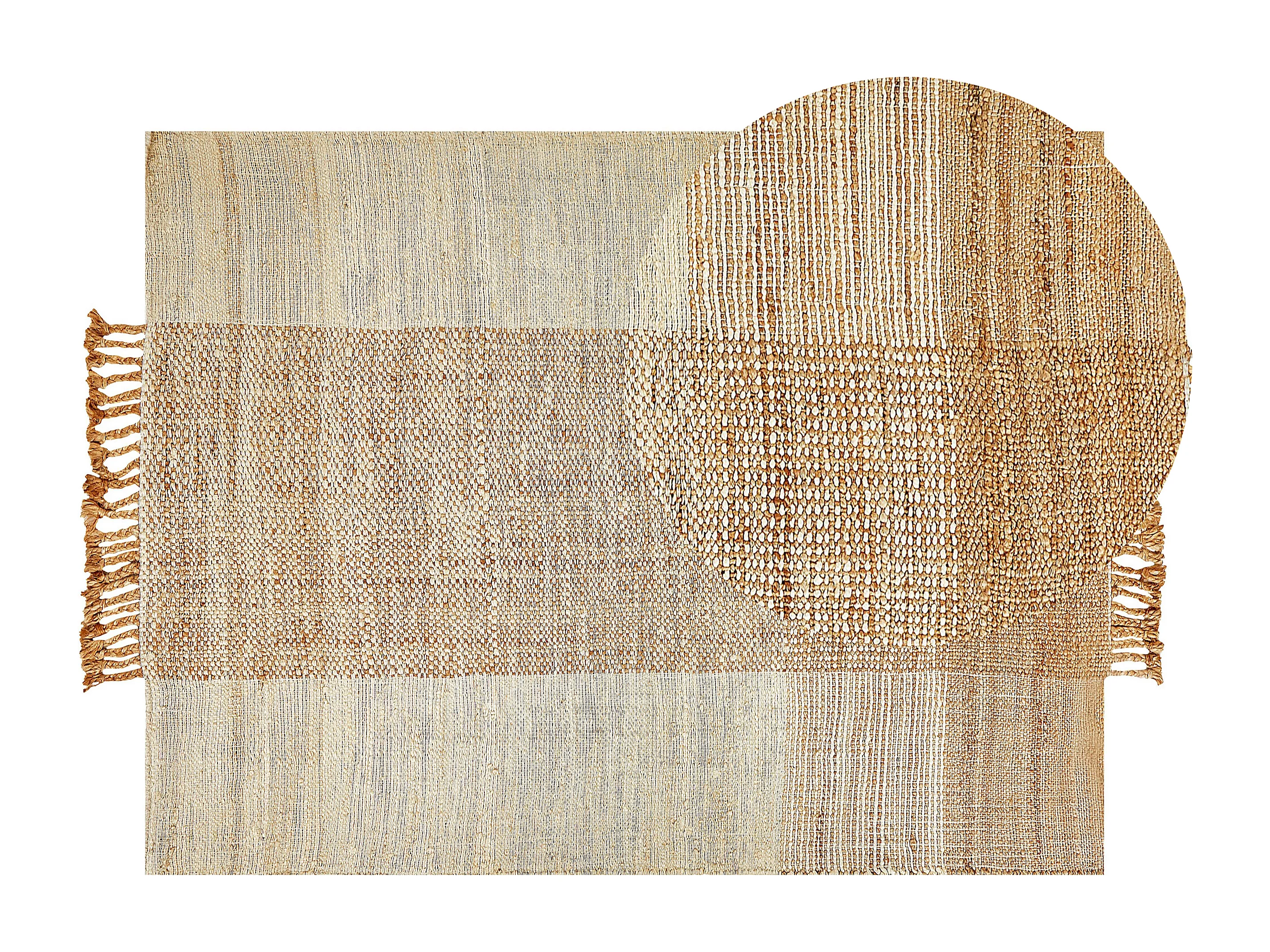 Teppich Jute natürlich beige 140 x 200 cm Fransen geometrisches Muster Hamzalar