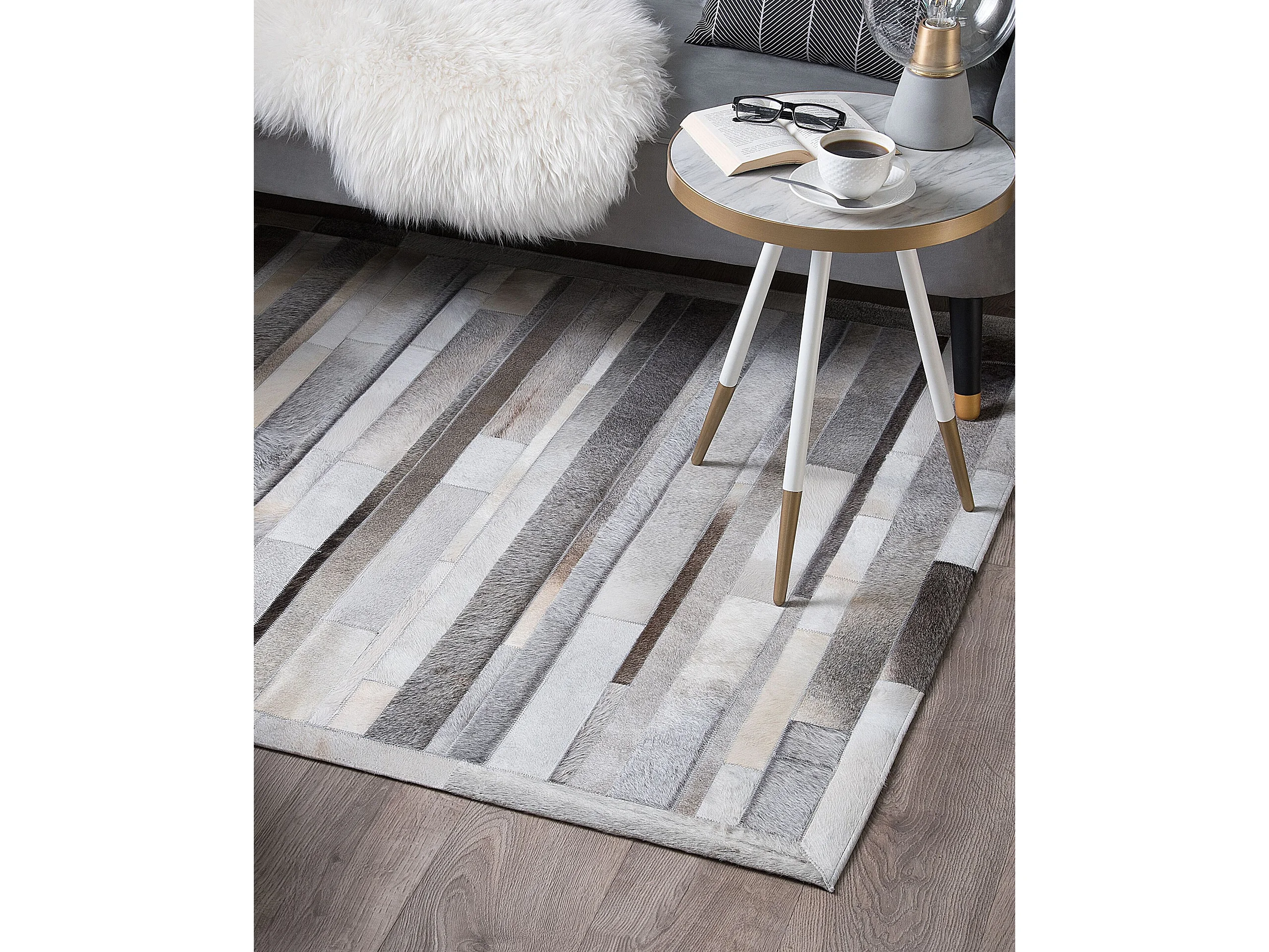 Teppich AZAY 140 x 200 cm Echtleder Hellgrau