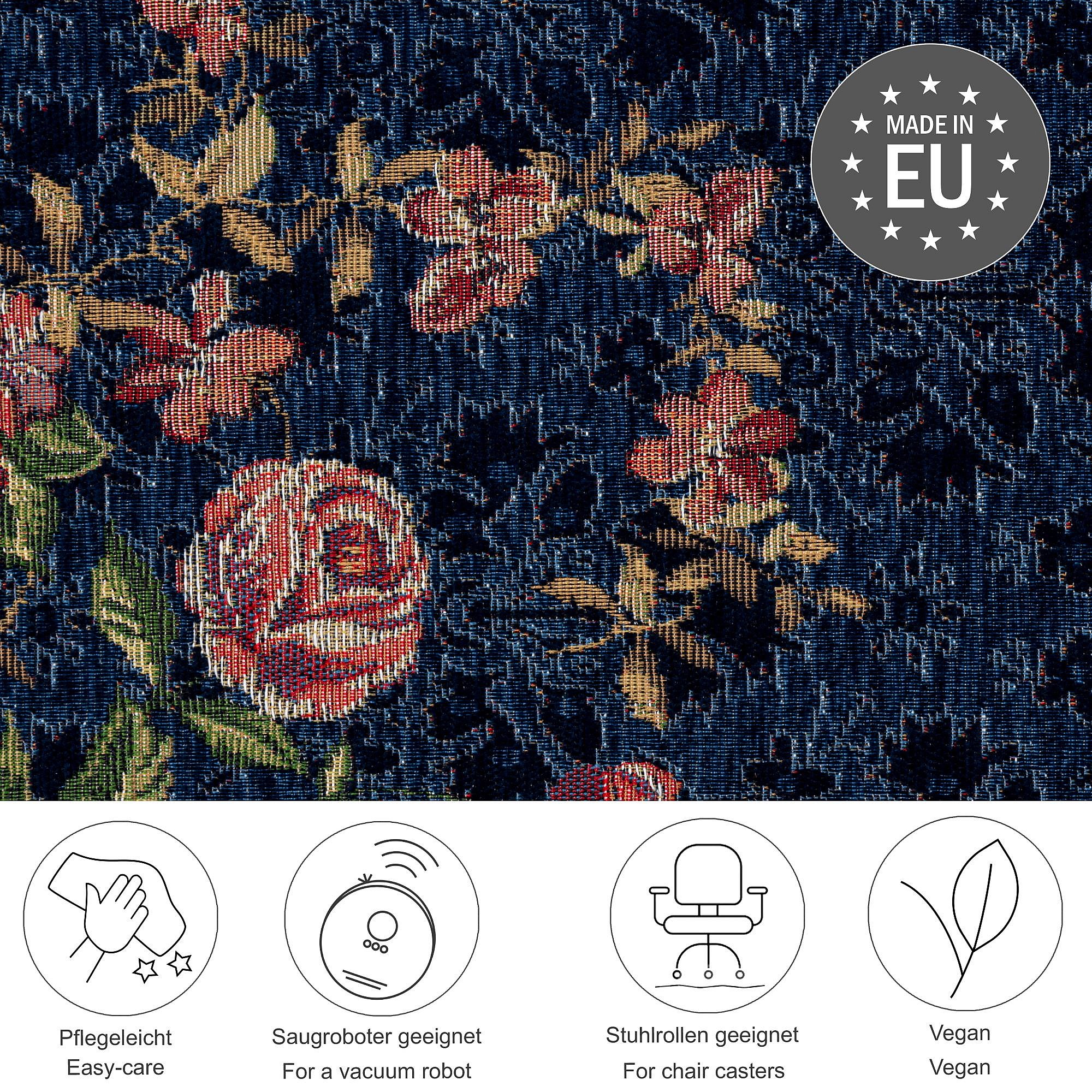 Teppich mit Bordüre und Blumenmuster 200x290 cm Blau Flomi