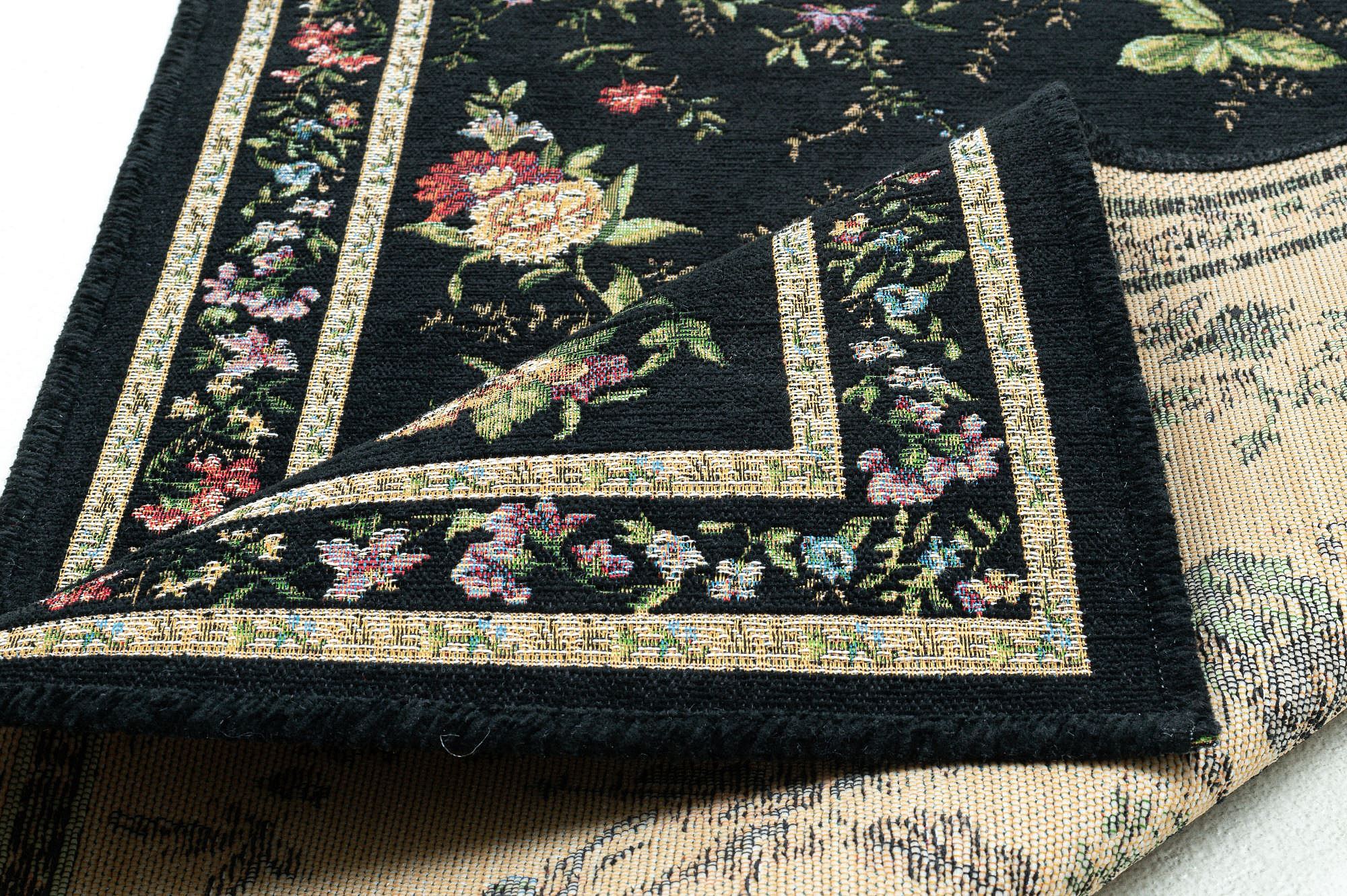 Teppich mit Bordüre und Blumenmuster 70x400 cm Schwarz Flomi