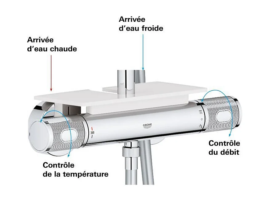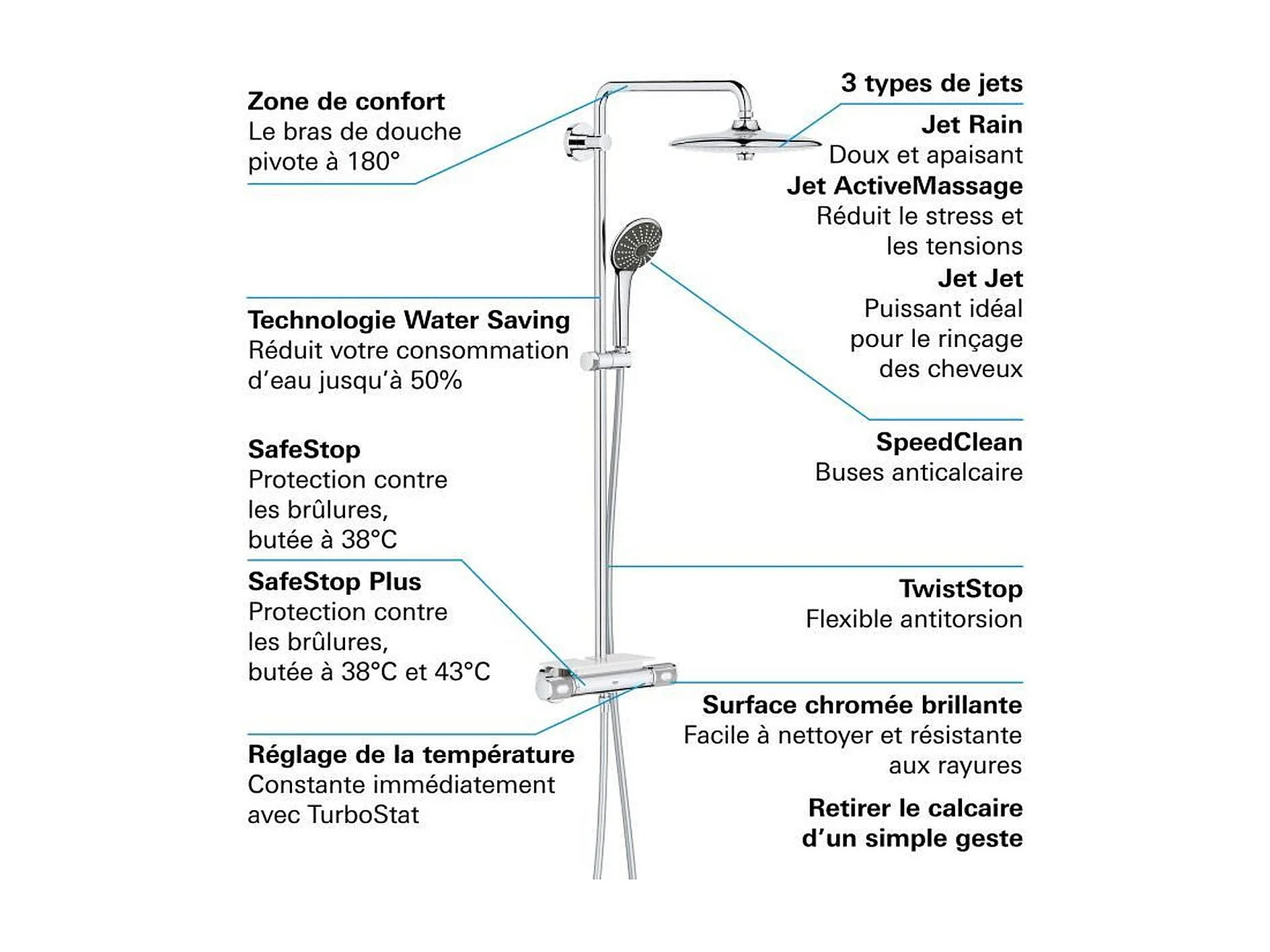 Thermostat-Duschsäule GROHE Vitalio Joy System 260 - Handbrause 3 Strahlen, Kopfbrause 3 Strahlen