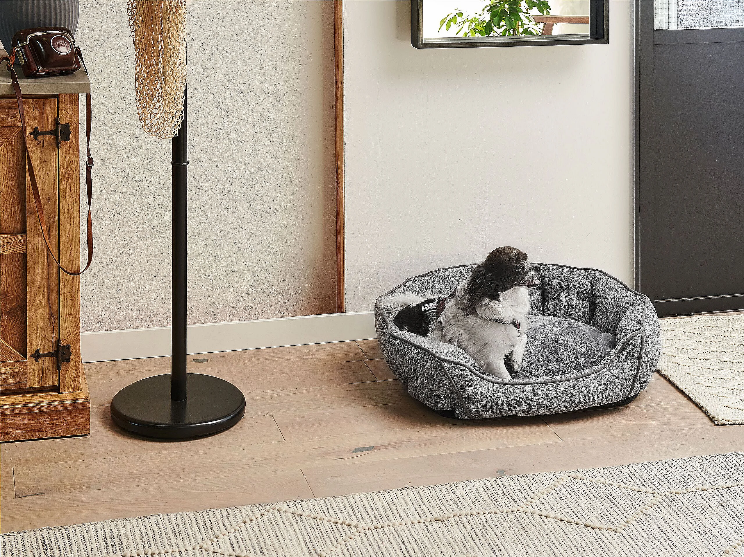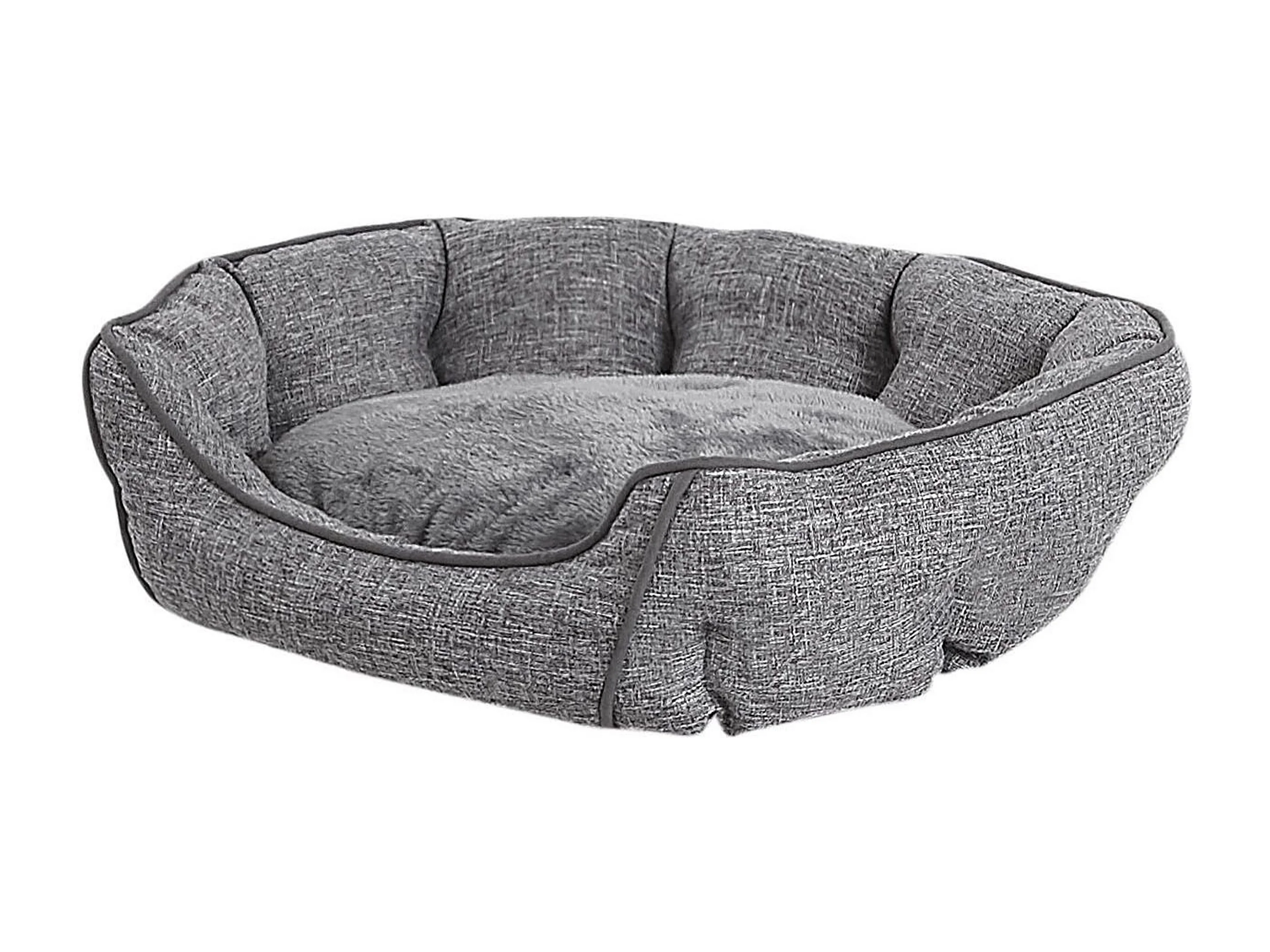 Kuscheliges Tierbett grau Leinen oval 65x50 cm für kleine und mittlere Hunde Katzen Candir