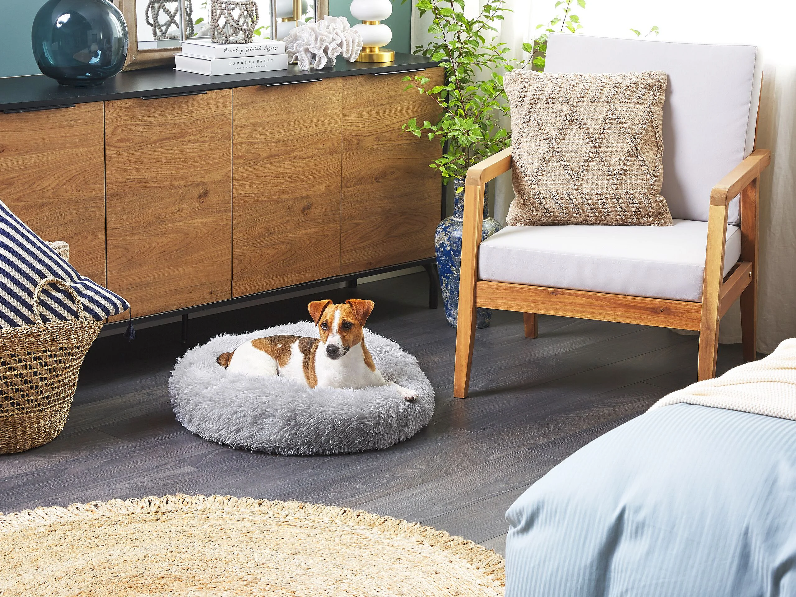 Rundes Haustierbett 45 x 45 cm mit Kunstfell und Polyester Grau Kepez