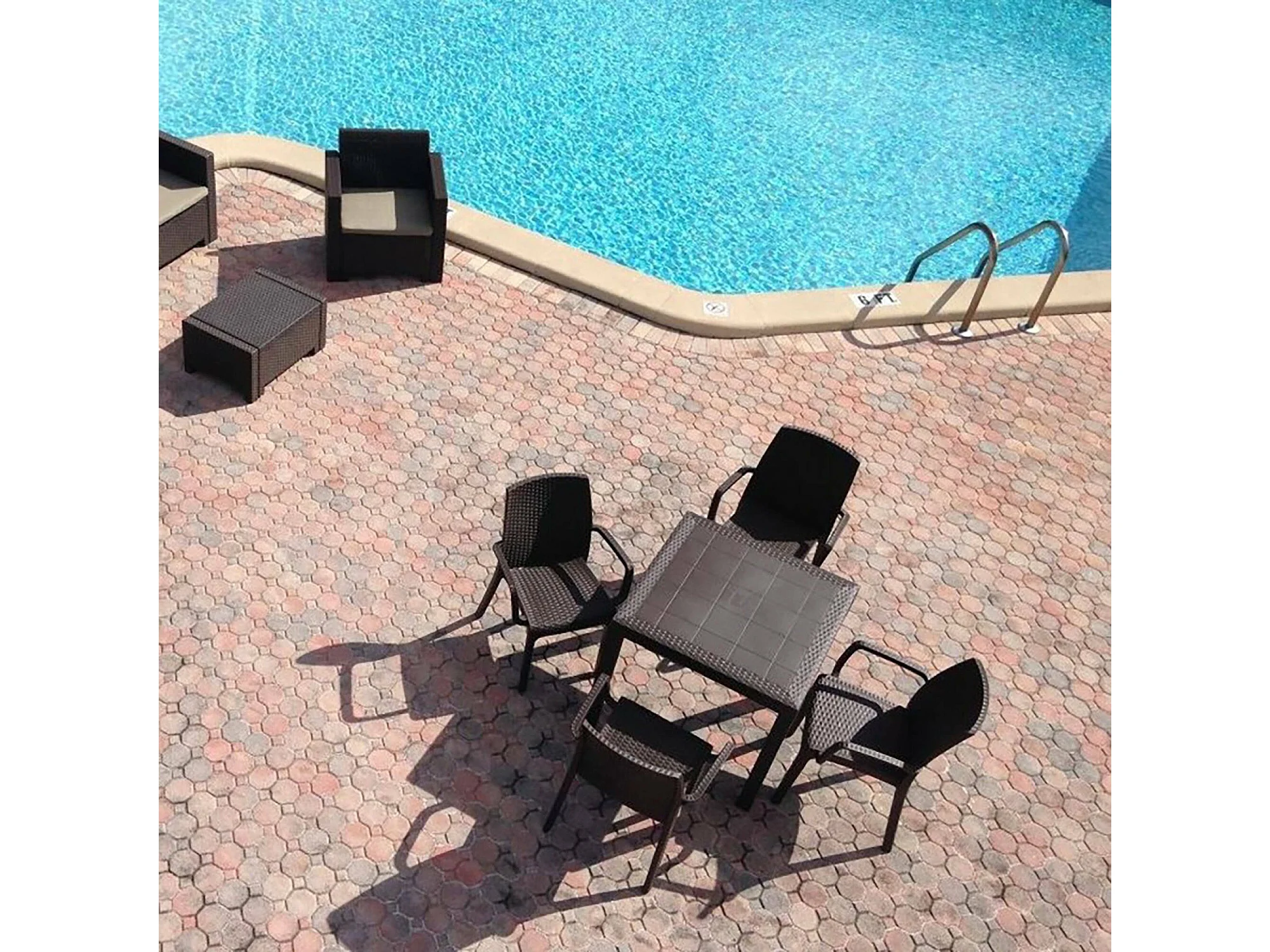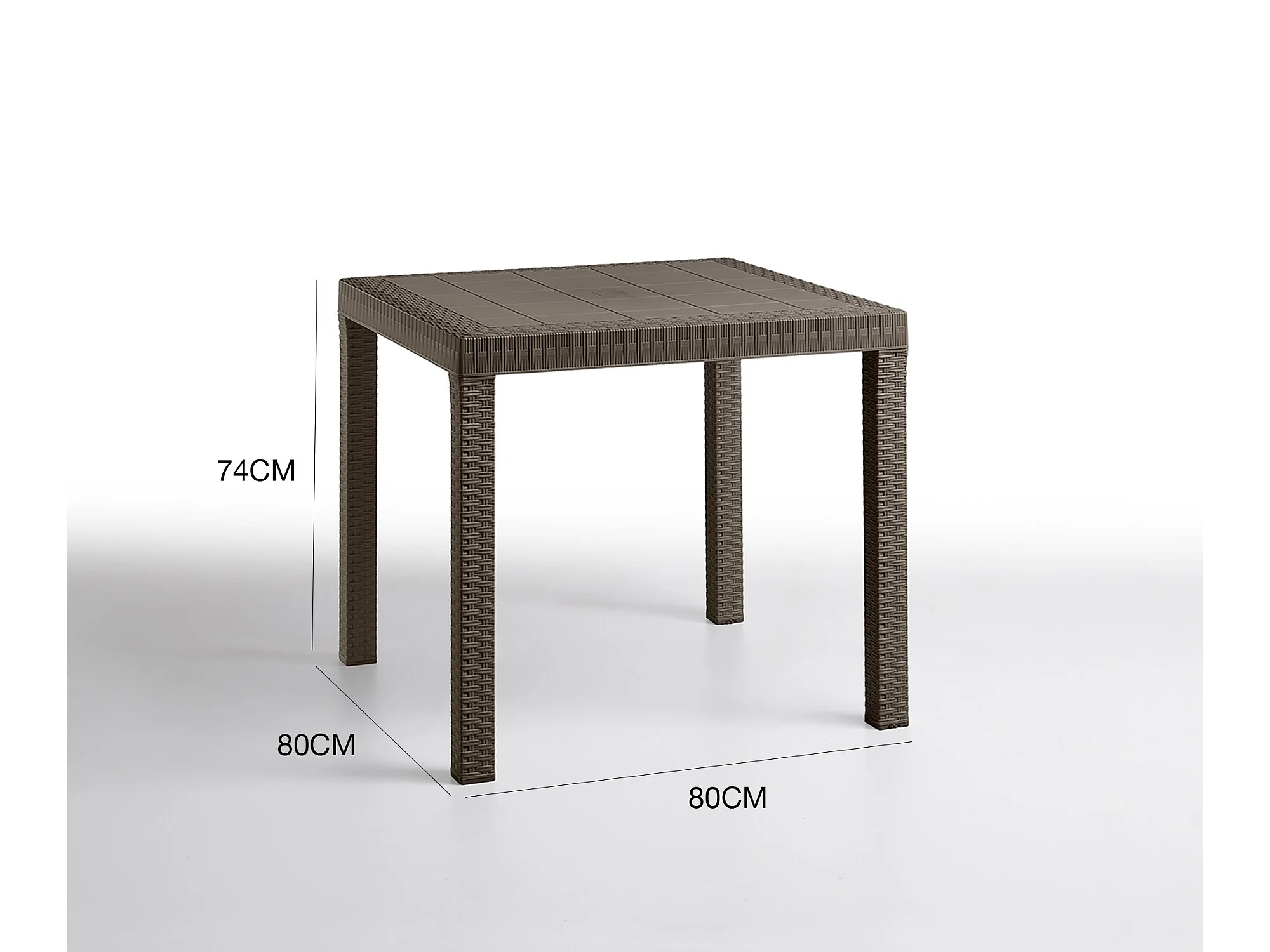 Tisch im Freien Dguidon, Fester quadratischer Tisch, Mehrzweck-Gartentisch mit Rattan-Effekt, 100% Made in Italy, 80x80h74 cm, Braun