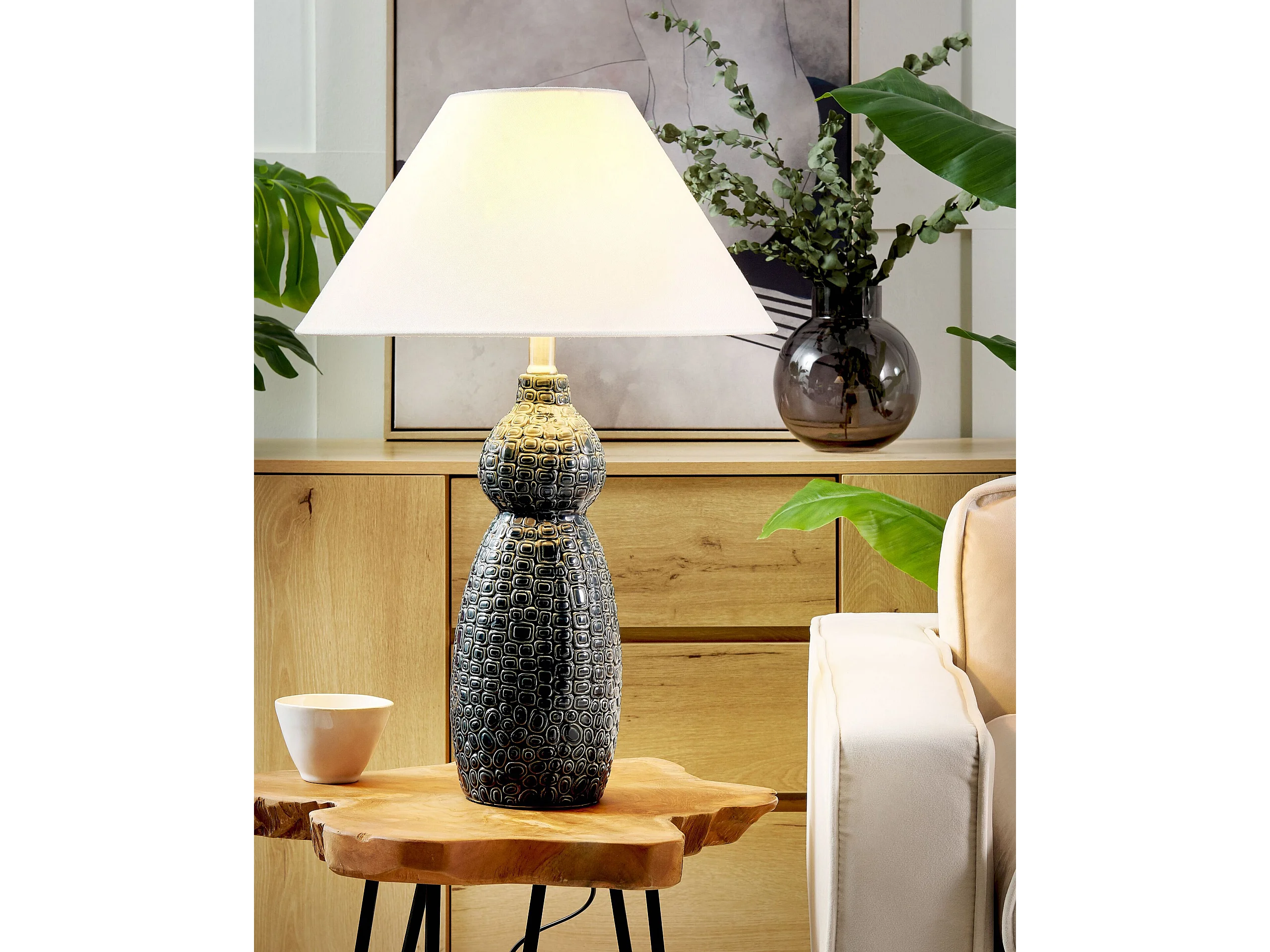 Tischlampe mit Keramiksockel Raumbeleuchtung Weiß Lampenschirm Dunkelblau Matina