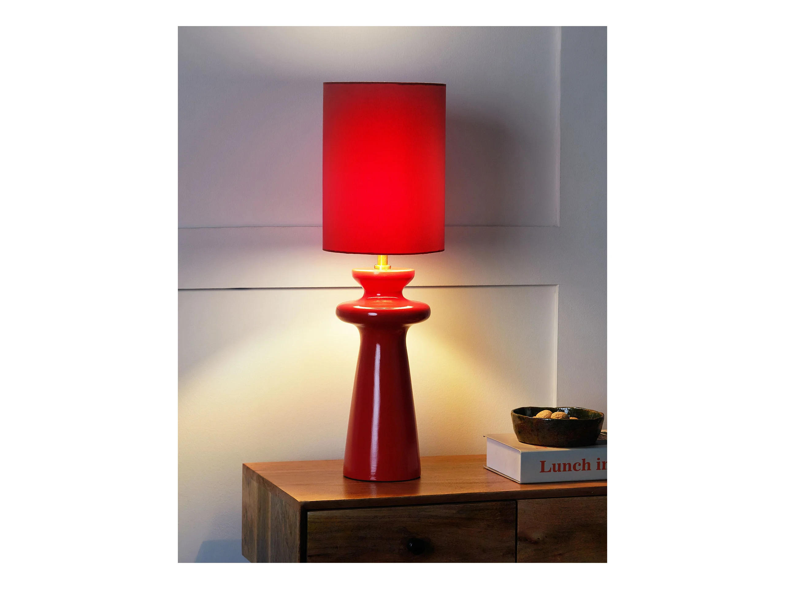 Tischlampe Keramik Vasenform rot mit Schirm Kunstwildleder Trommelform Oteros