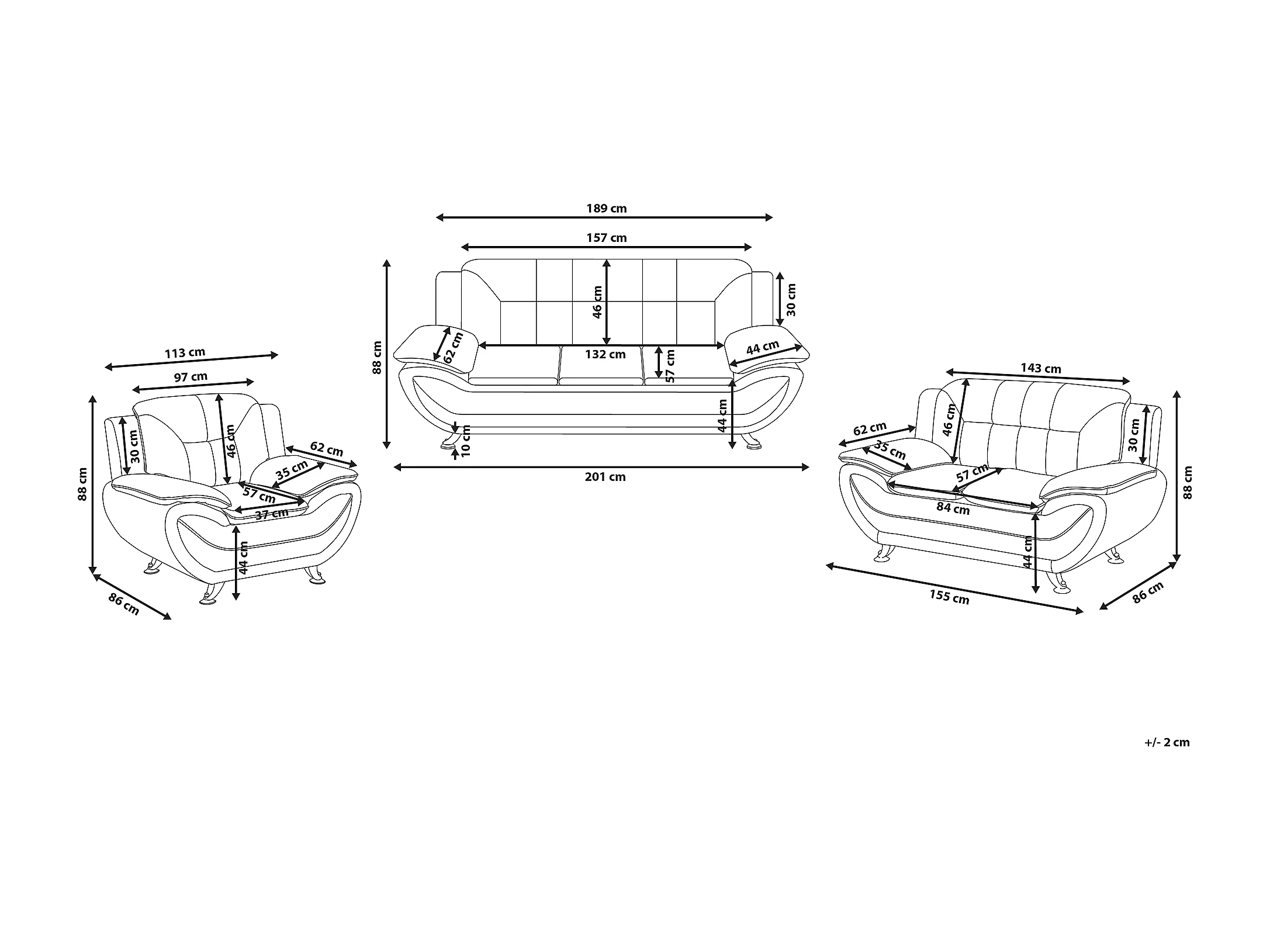 Trendy Sofa Set Sessel 3er & 2er Sitzer dicke Armlehnen Kunstleder schwarz Leira
