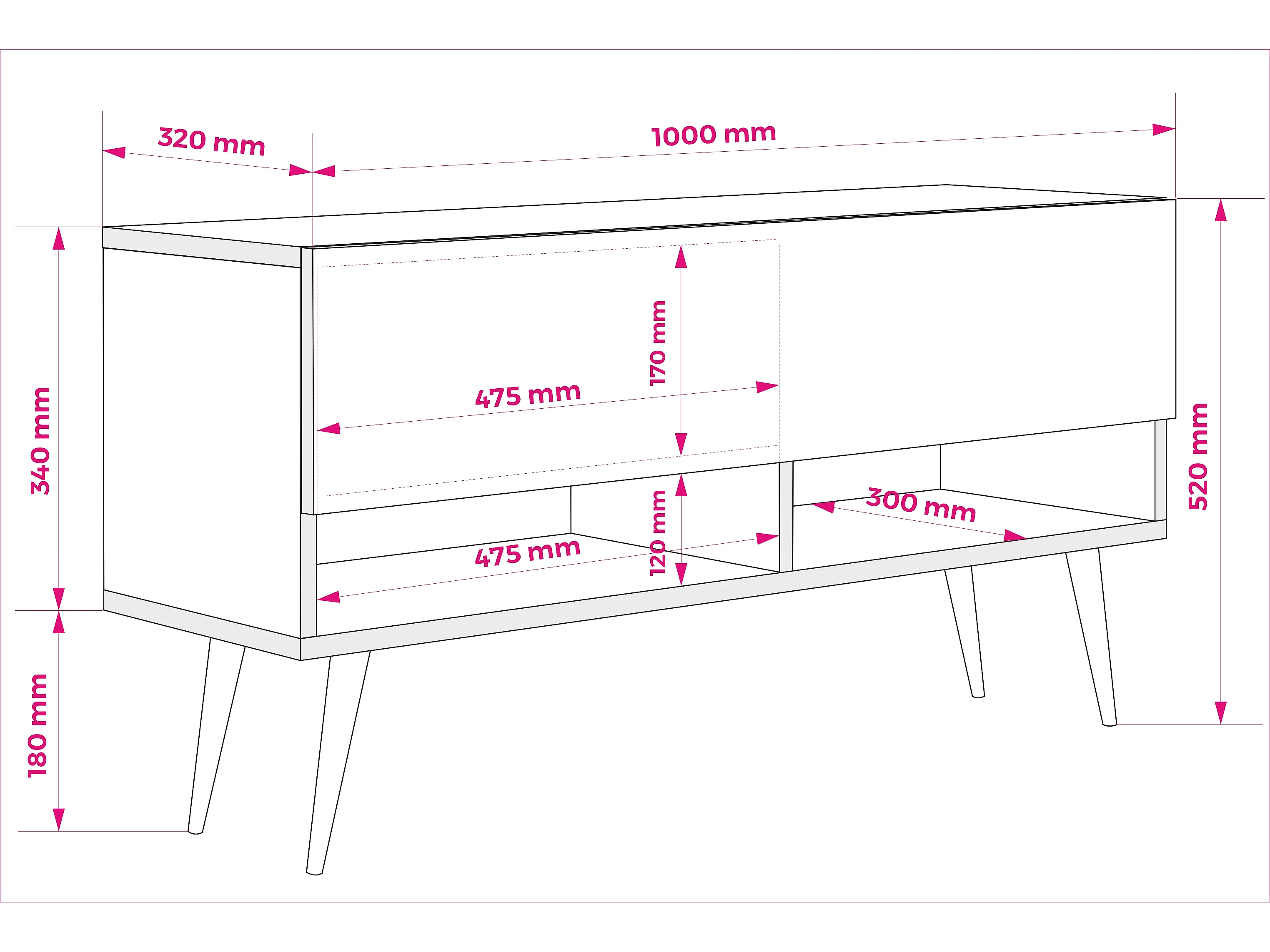 TV-Lowboard 100 cm Mattschwarz, schwarze schräge Beine, 100 × 32 × 52 cm