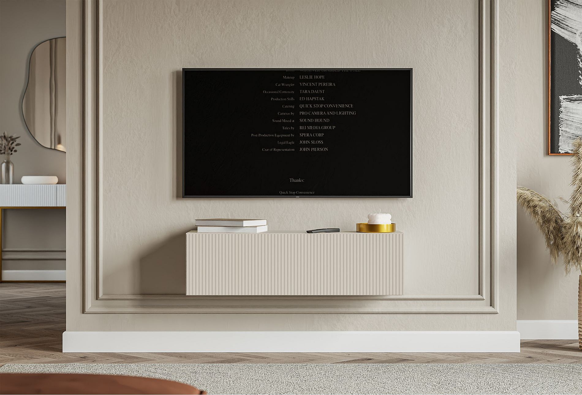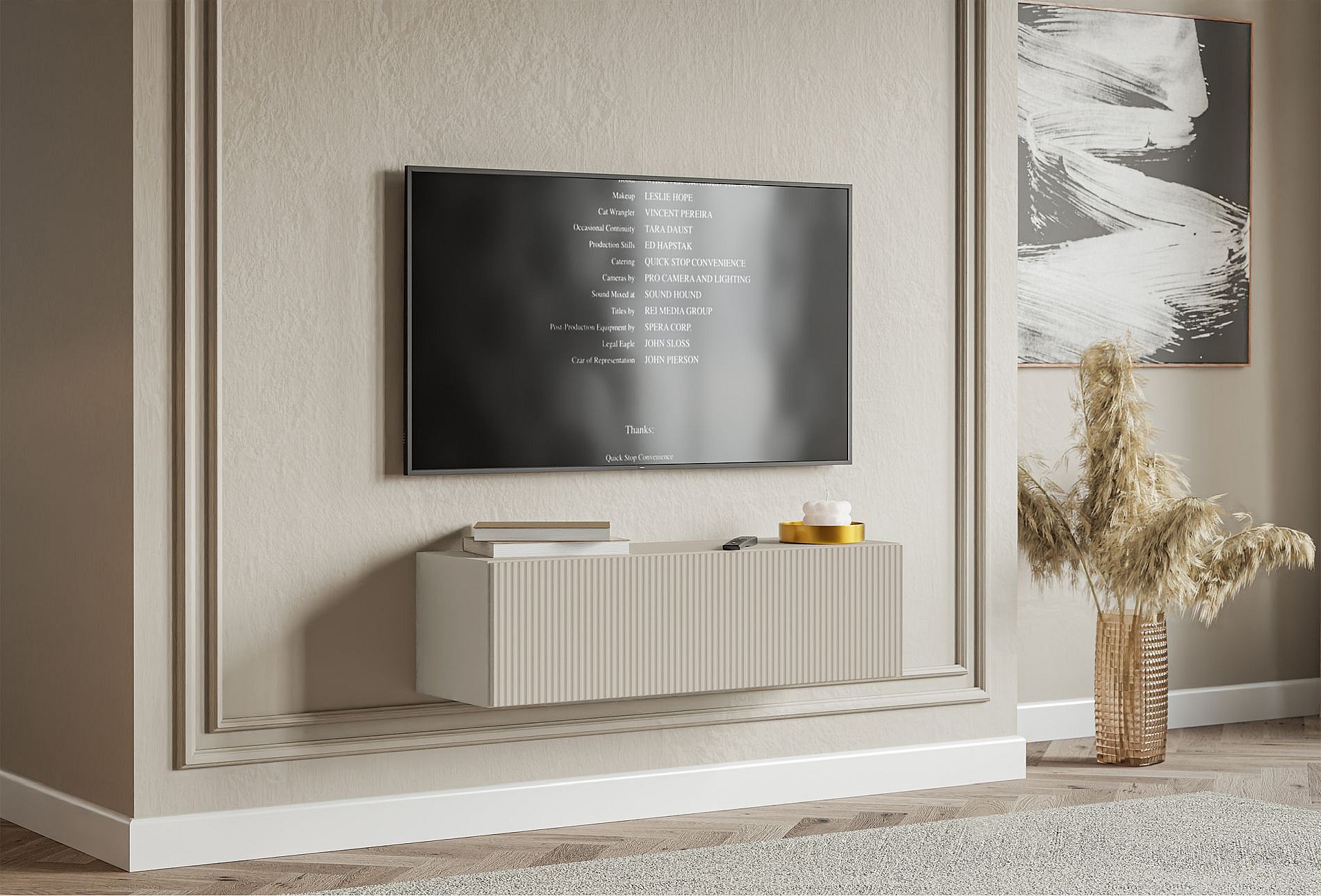 TV-Lowboard hängend – mit geriffelten Fronten – 100 cm – greige – VELDIO