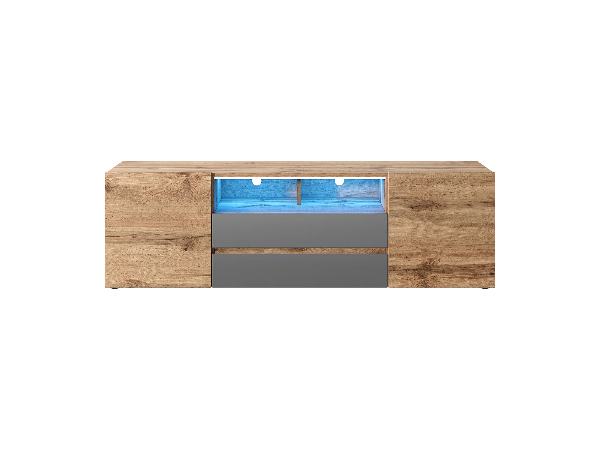TV-Ständer / TV-Bank (Wotan-Eiche / Hochglanz-Grau, 137 cm, mit LED) - BROS
