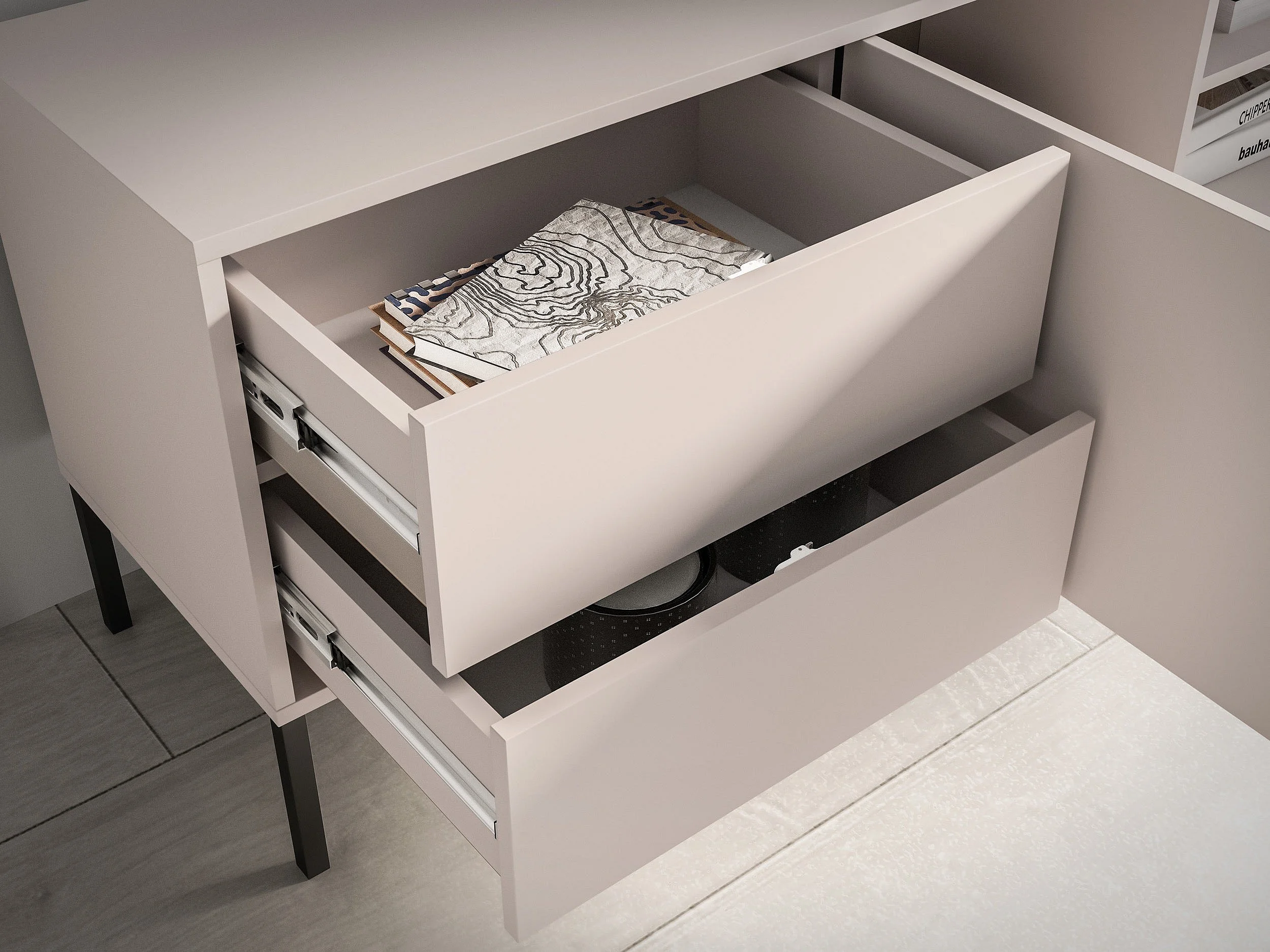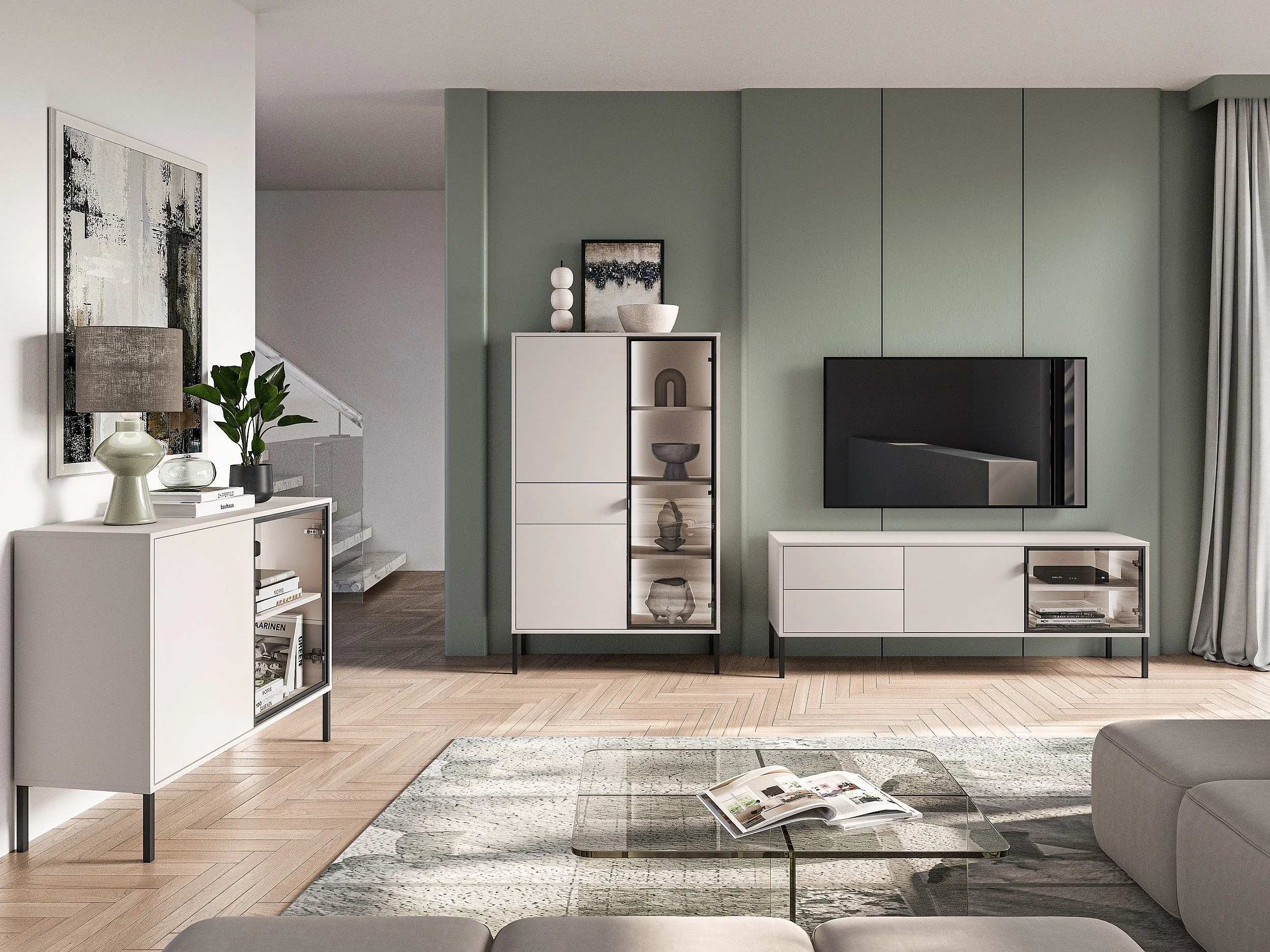 TV-Lowboard mit beleuchteter Glasvitrine - Kaschmirgrau - 160 cm