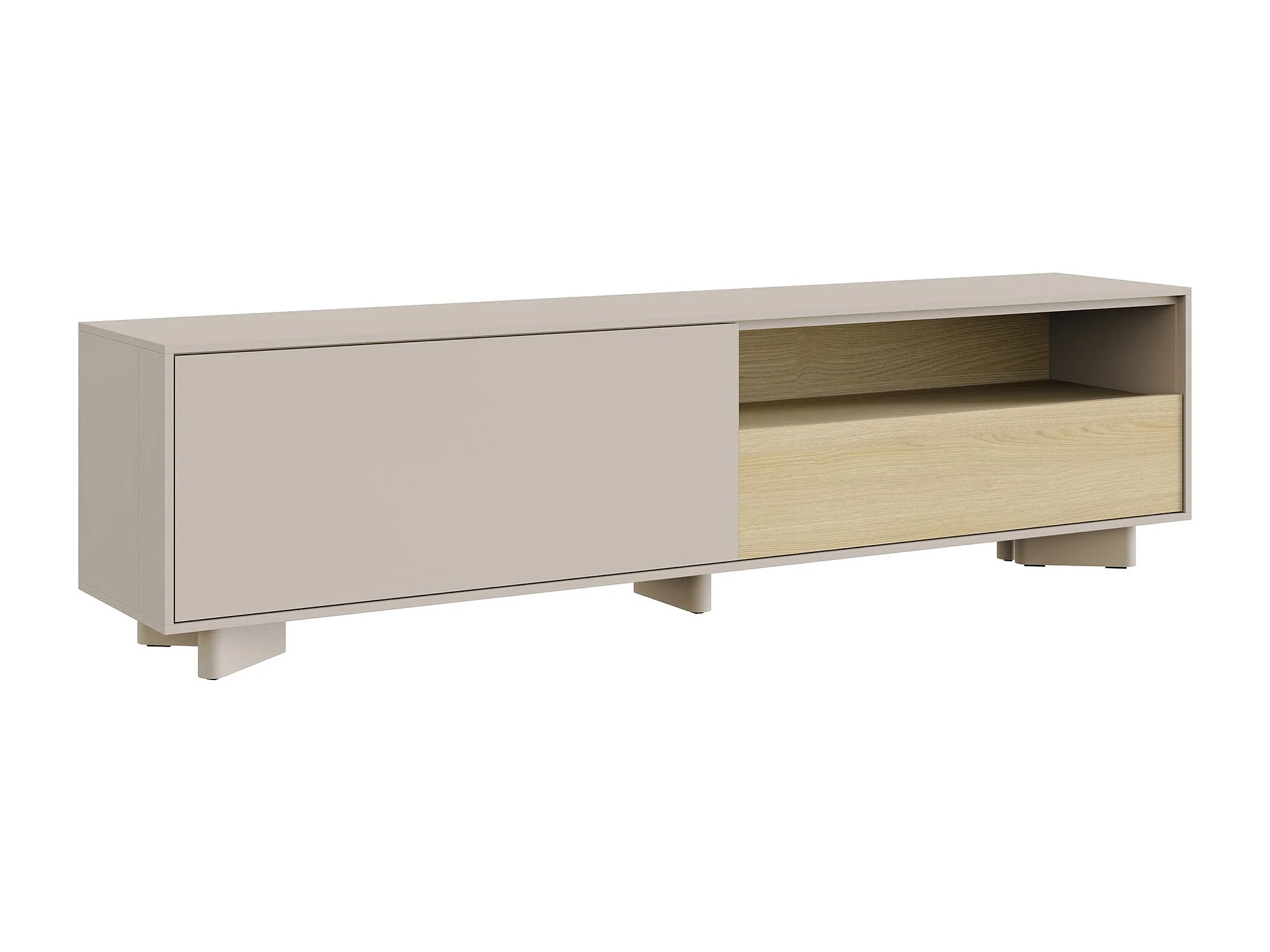 TV-Lowboard mit Schublade Kaschmirgrau / Eichenholzoptik – 175 cm – DISTRIA