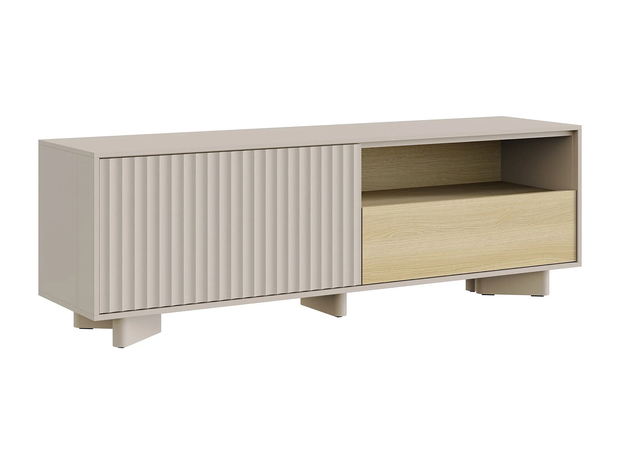 TV-Lowboard mit Schublade und geriffelter Front Kaschmirgrau / Eichenholzoptik – 140 cm – DISTRIA