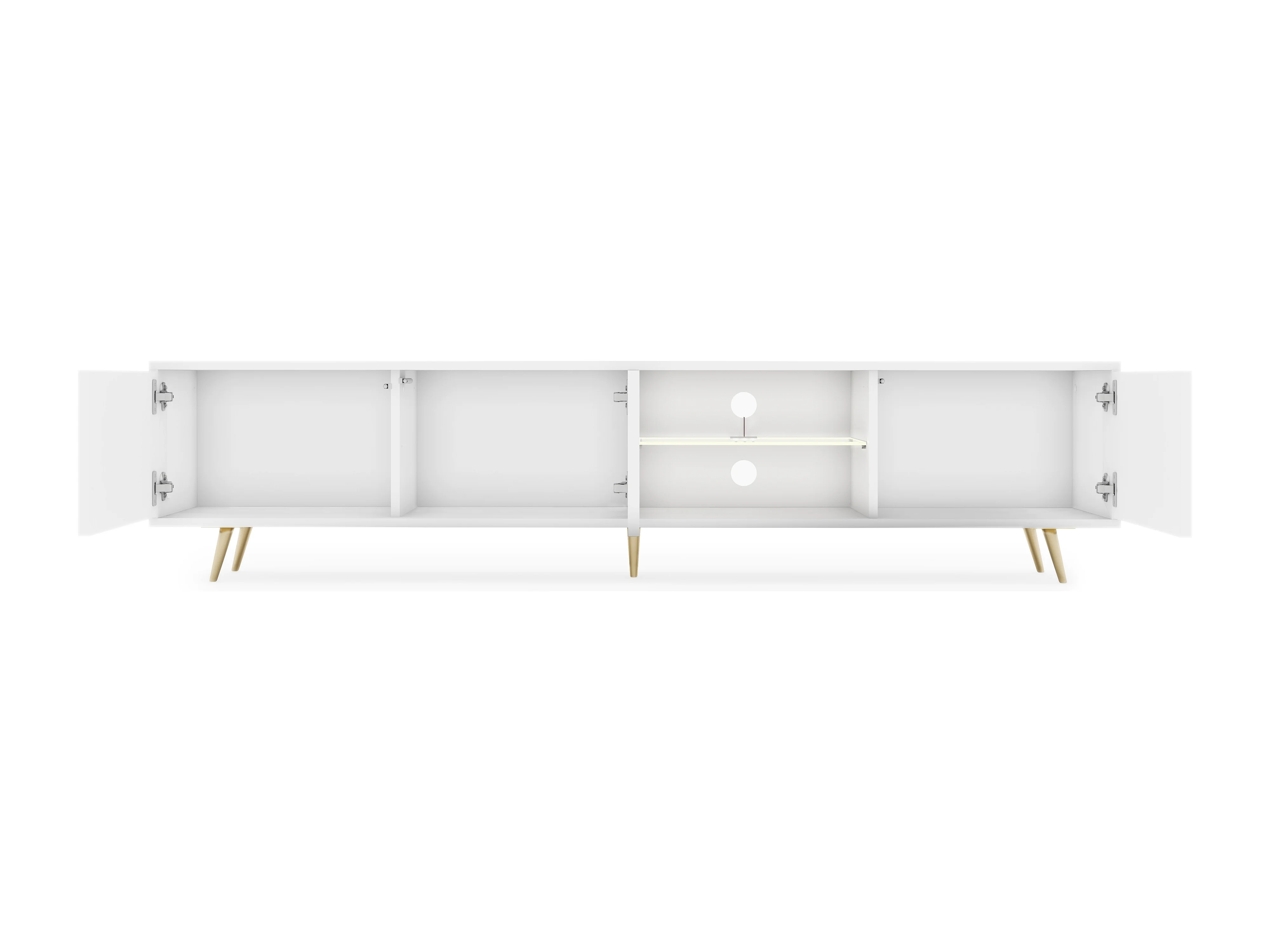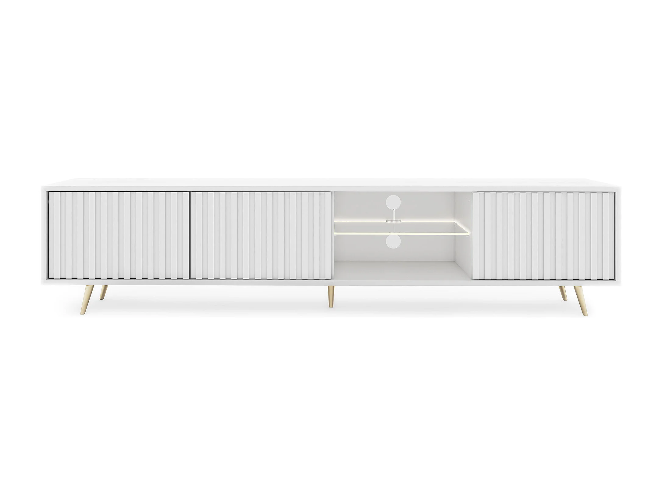 175 cm weißer LED-TV-Schrank mit Lamellenfronten und goldenen Beinen – Selsey Bello
