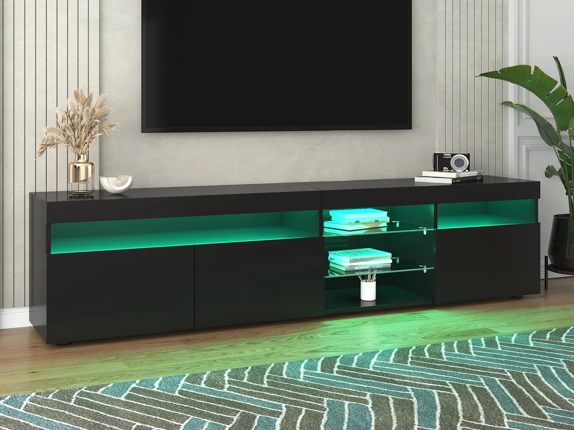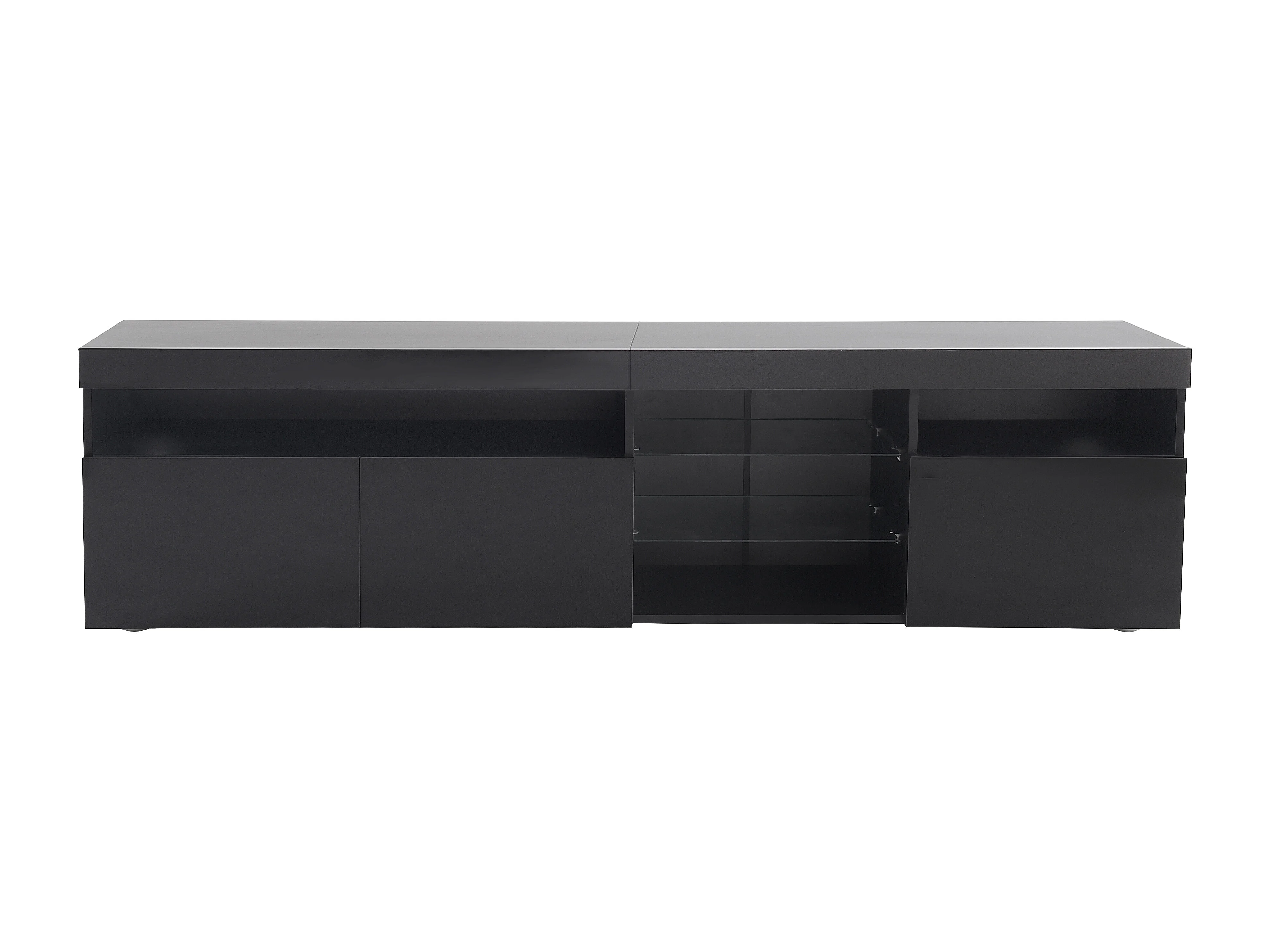 Moderner TV-Schrank 180 cm mit LED – 3 Türen und 5 offene Fächer – Schwarz