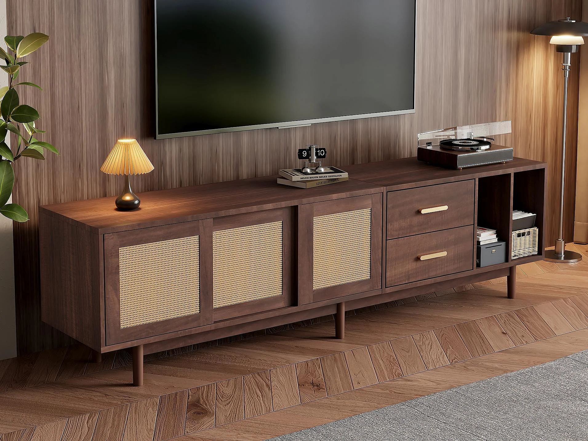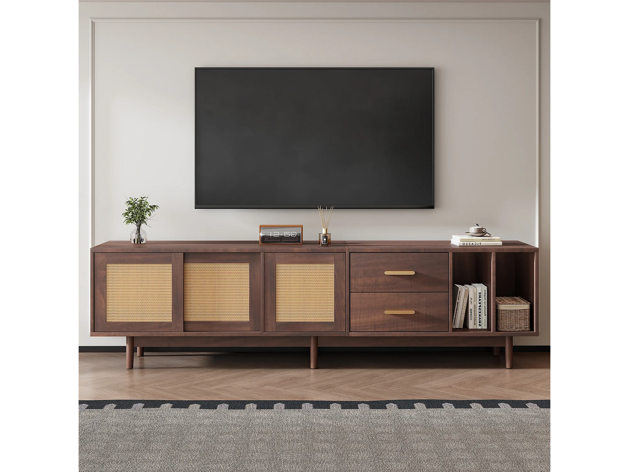 TV-Möbel 190x40x52 cm – mit 2 Schubladen – mit Stauraumfächern – für 75"-Fernseher – braun