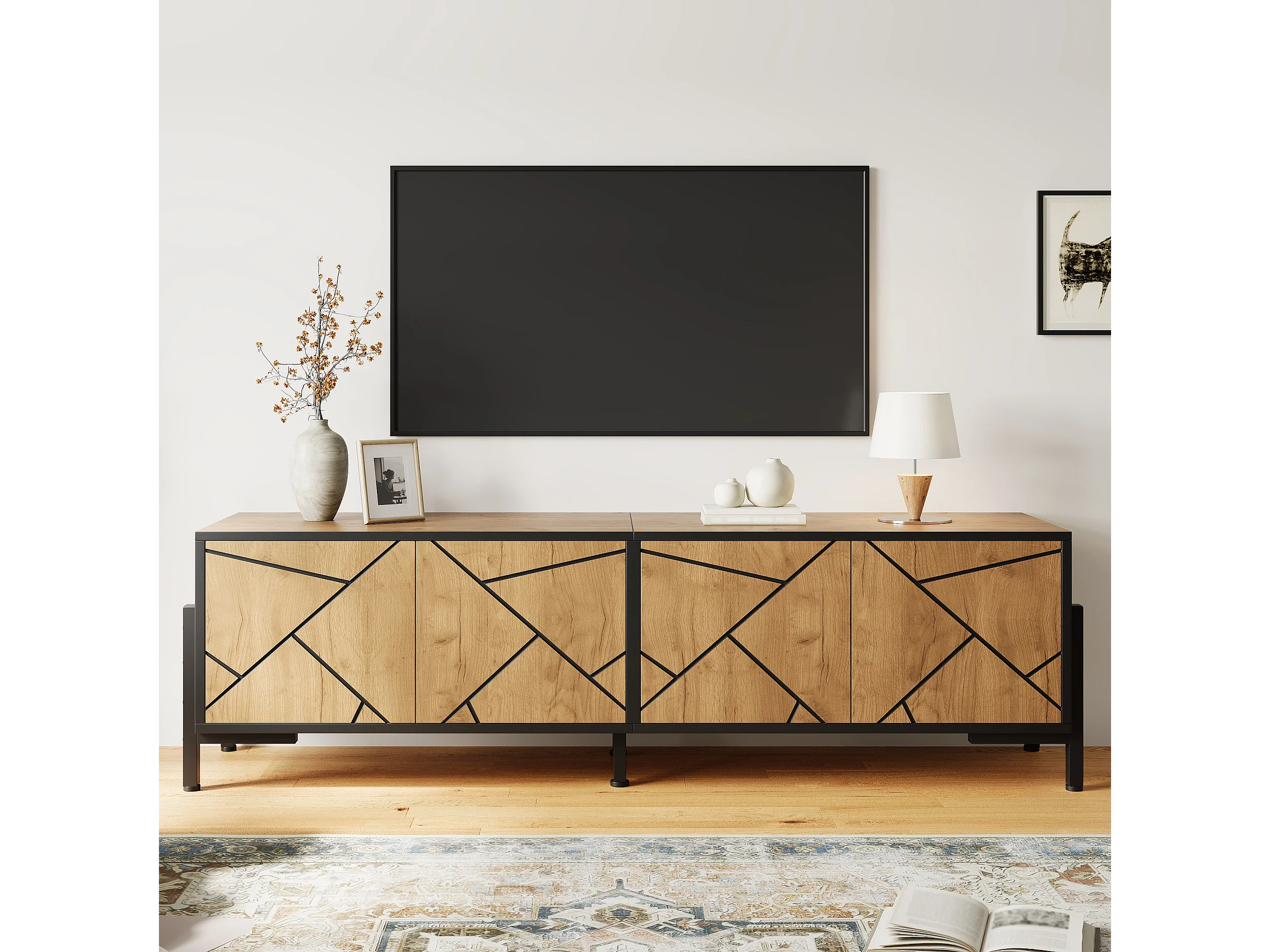 TV-Möbel fürs Wohnzimmer – 153 x 40 x 50 cm – mit 4 Türen – geometrisches Design – für 65-Zoll-Fernseher – MDF – natur