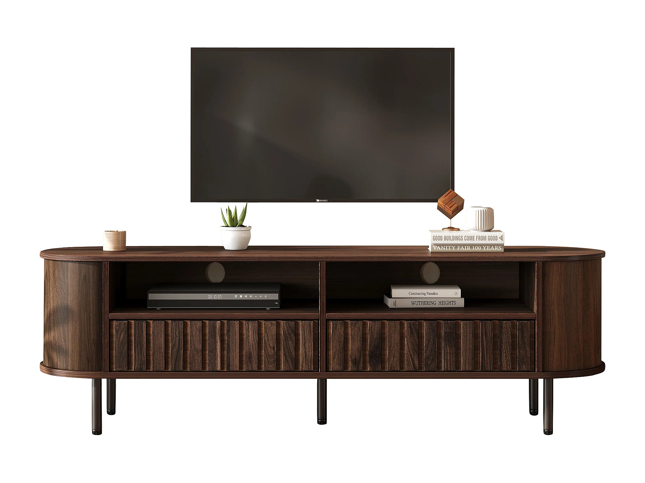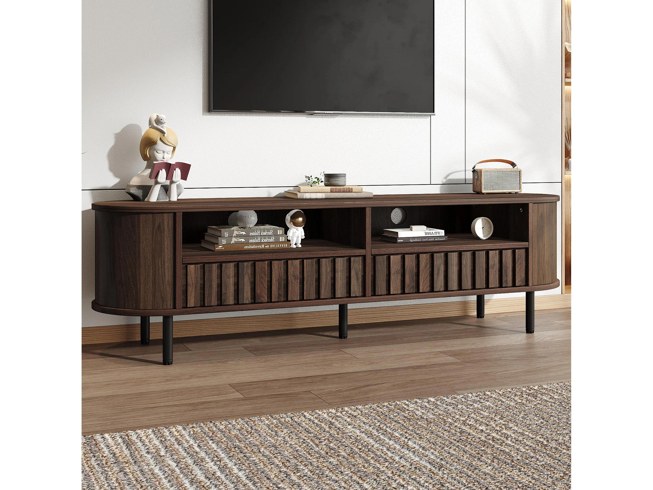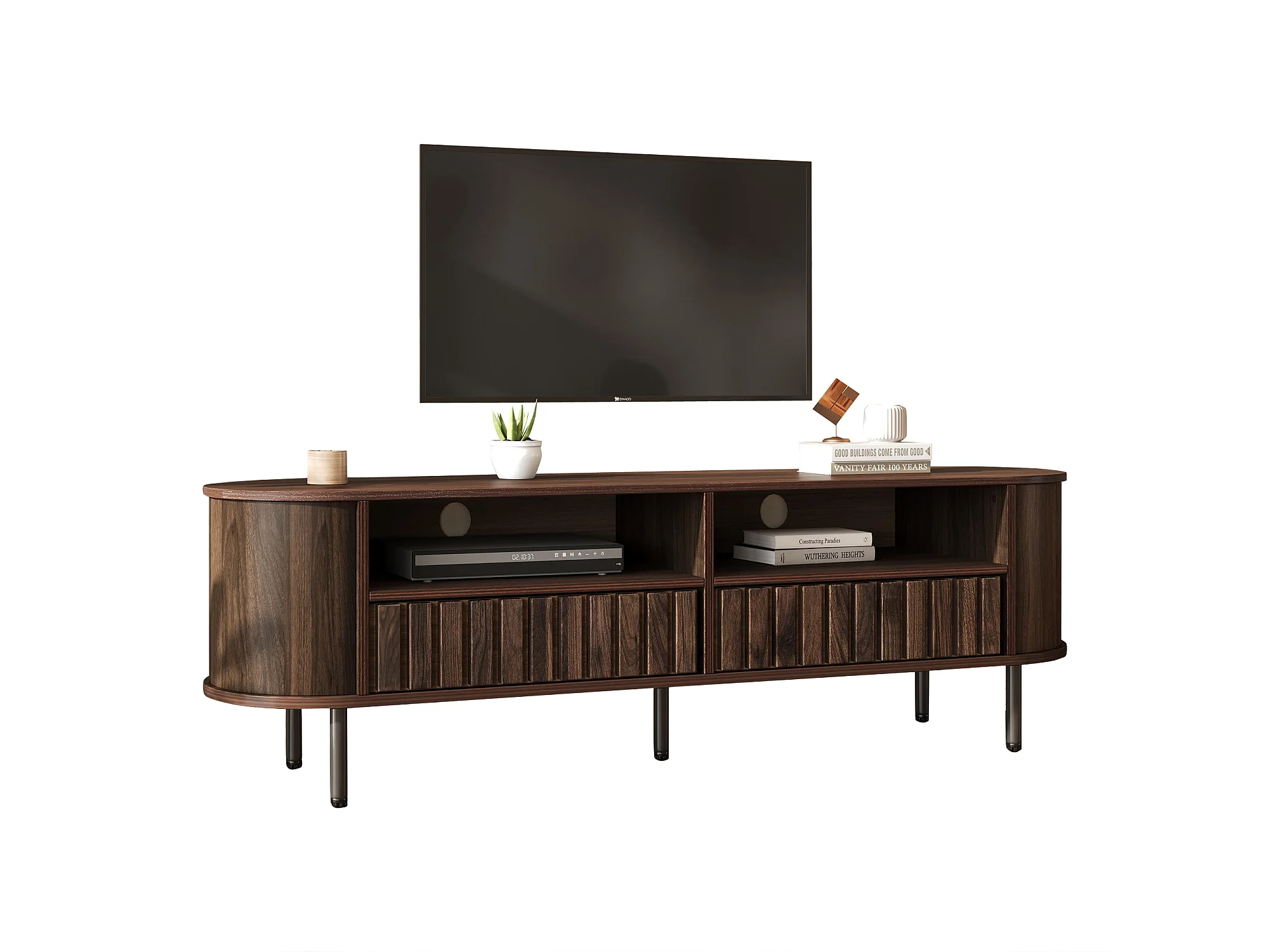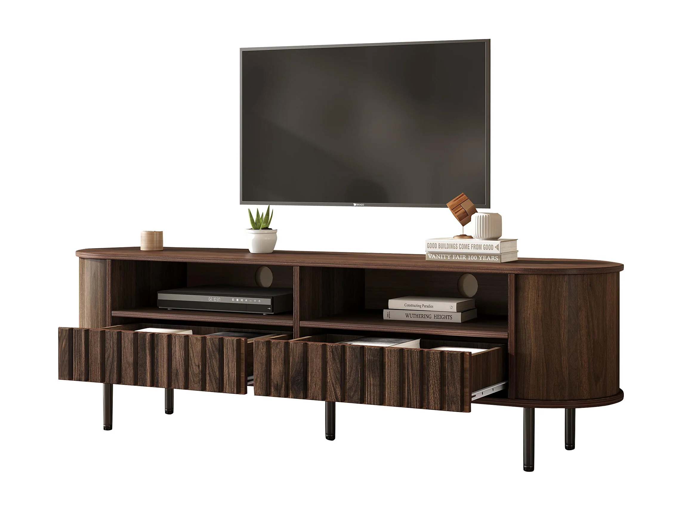 TV-Möbel fürs Wohnzimmer – 160 x 40 x 48 cm – mit 2 Schubladen + Ablage – für 65-Zoll-Fernseher – MDF – braun